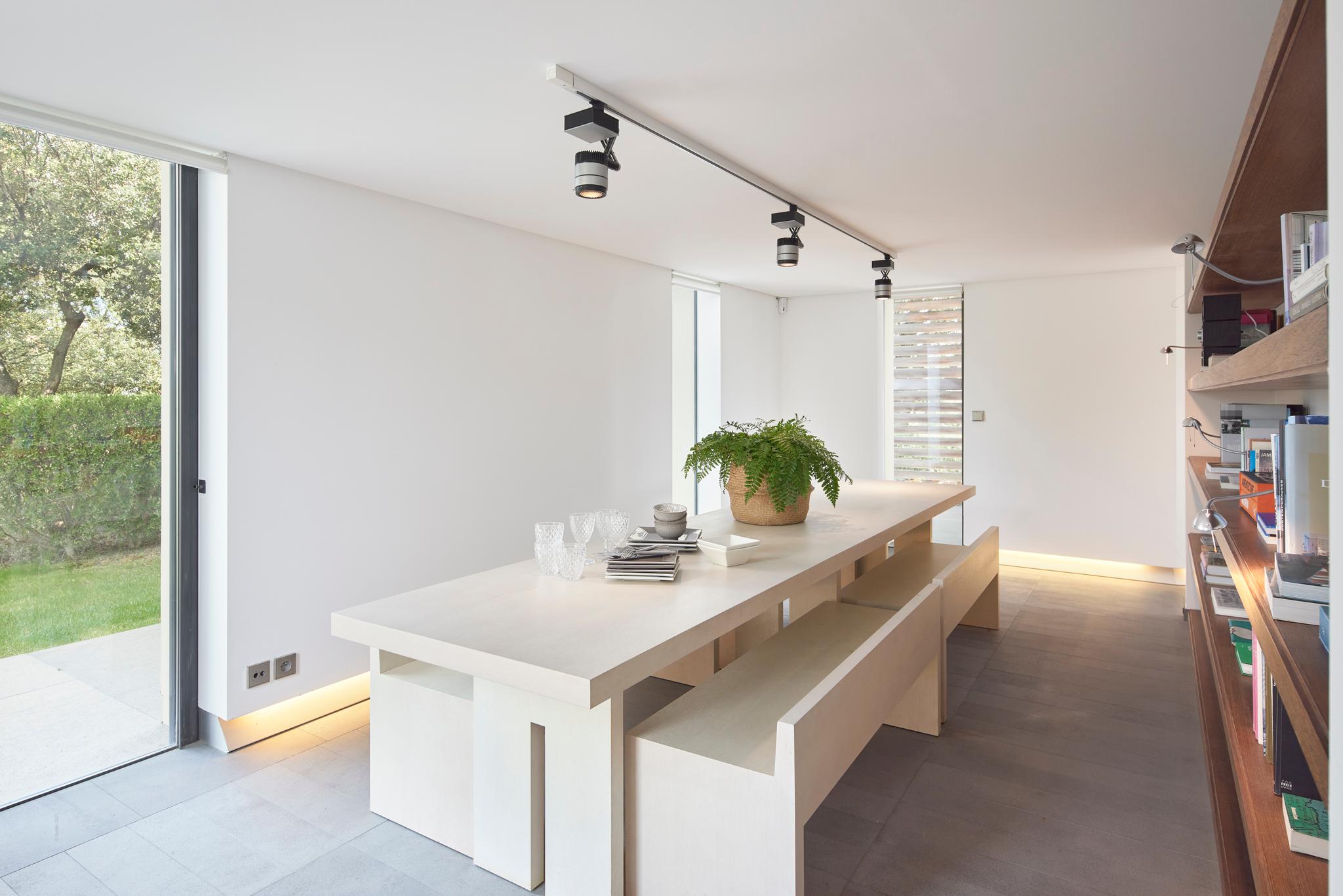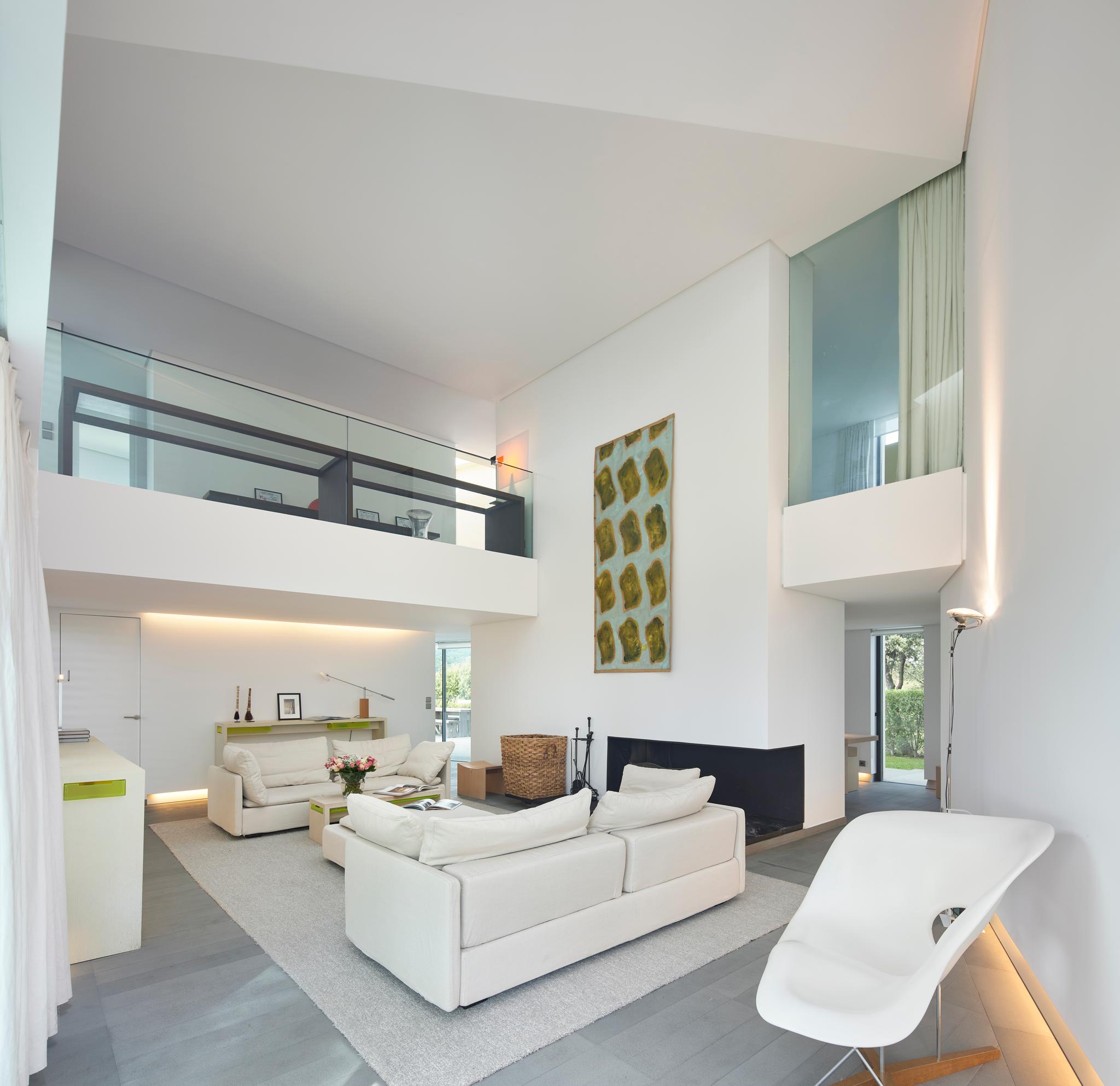 On the first floor: a mezzanine with a study area, two bedrooms, two shower rooms and an access to the roof terrace, offering a breathtaking view overlooking an ocean of trees.