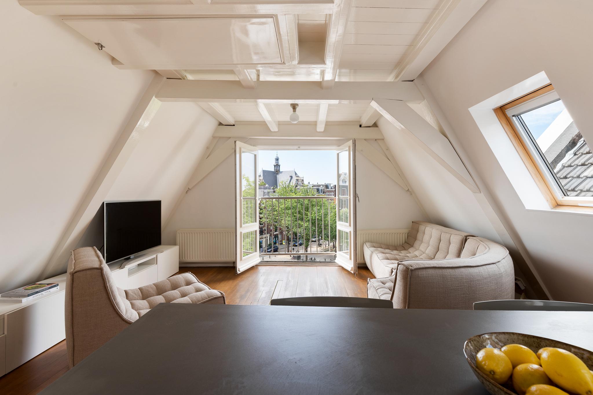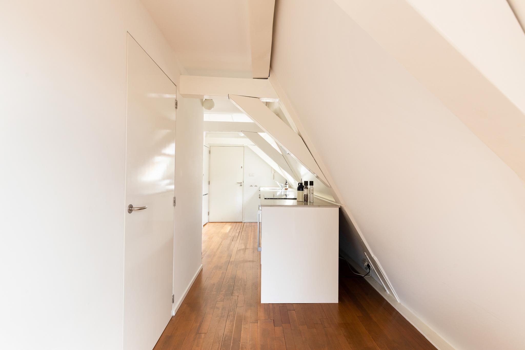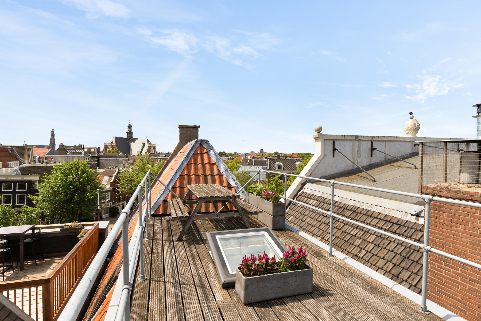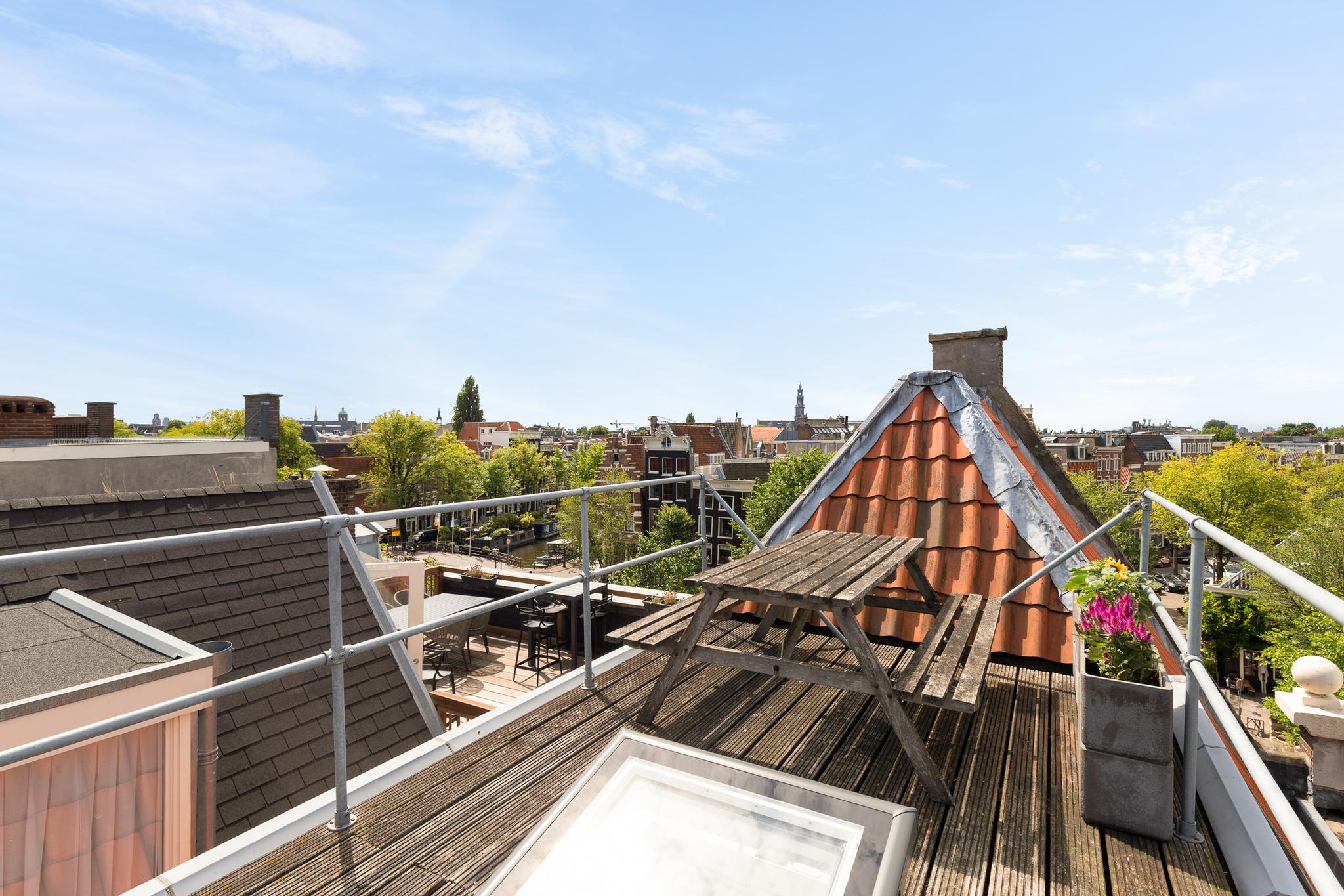 Located along the stunning Brouwersgracht in the popular Jordaan neighbourhood: unique top floor apartment of 39.2 m2 situated on private land, with an elevator and spectacular views over the city.