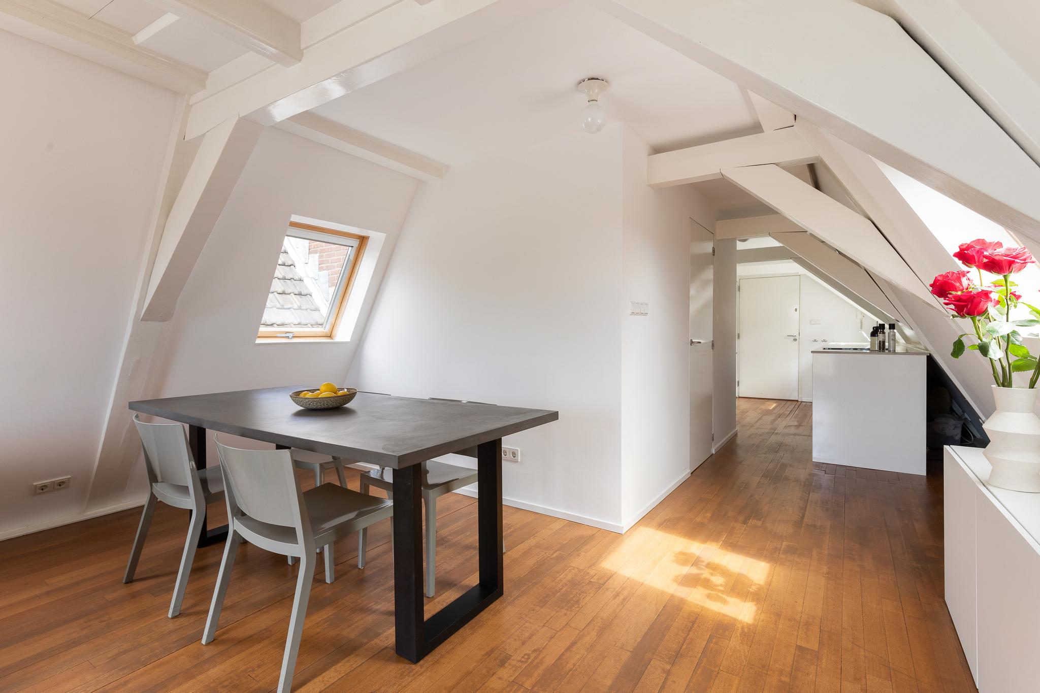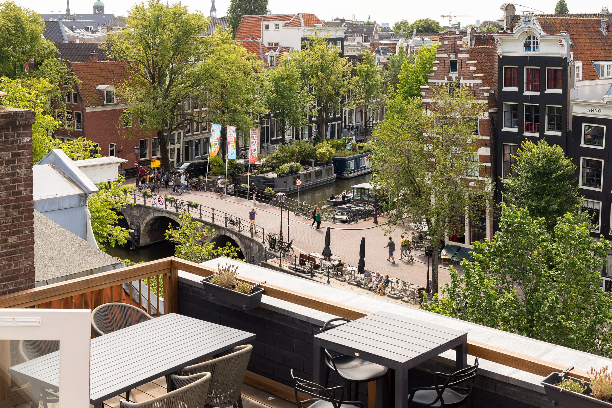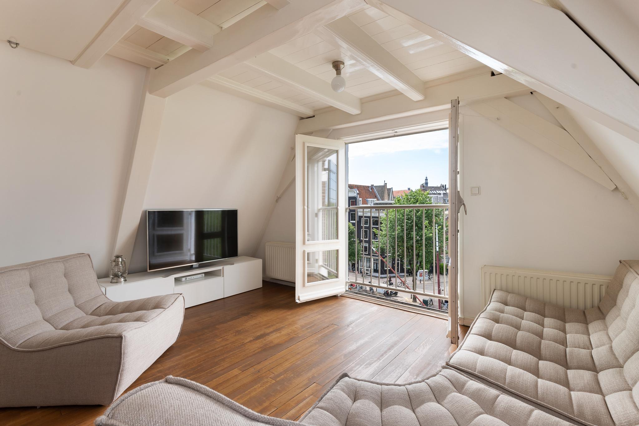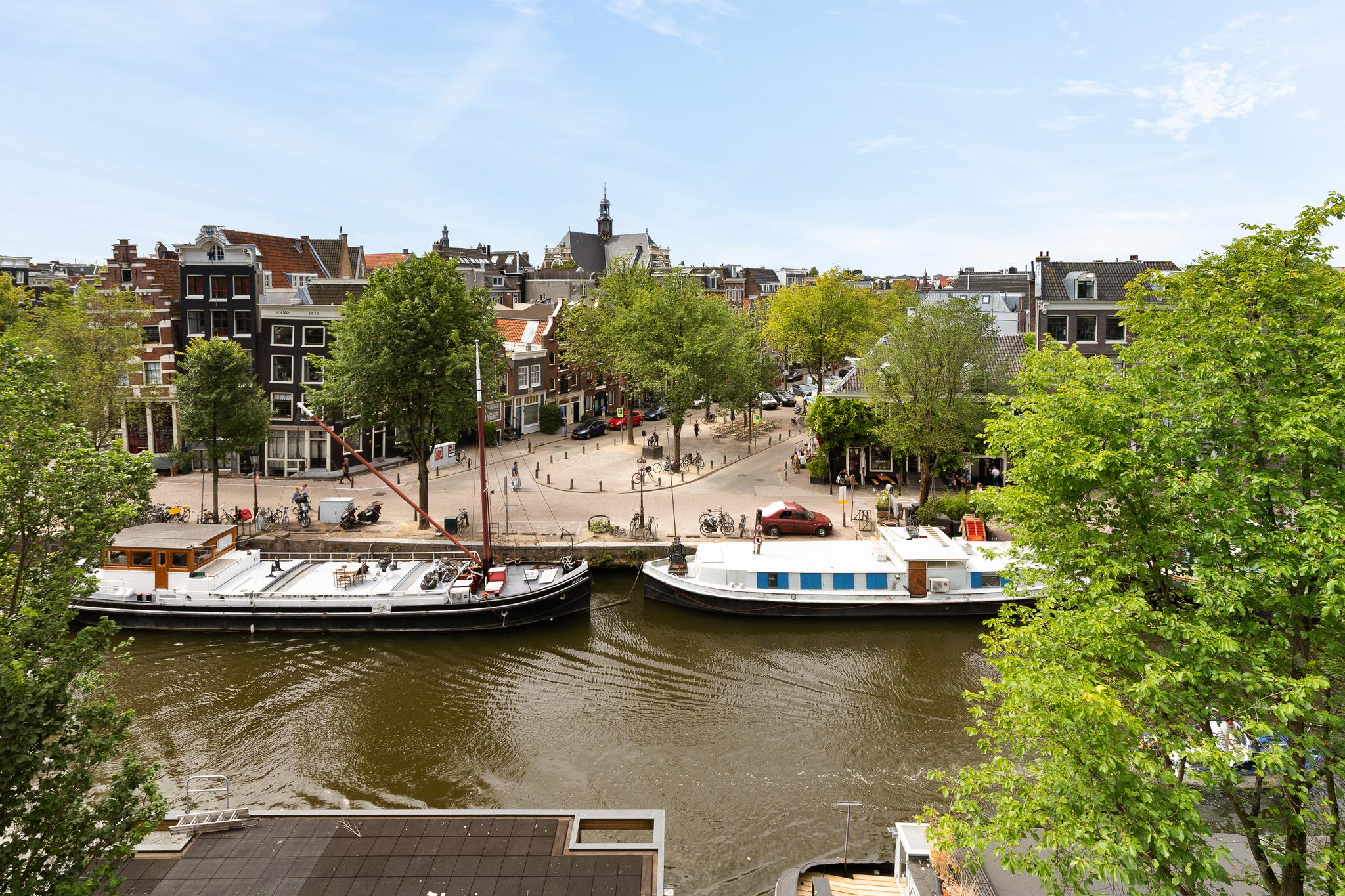 Located along the stunning Brouwersgracht in the popular Jordaan neighbourhood: unique top floor apartment of 39.2 m2 situated on private land, with an elevator and spectacular views over the city.