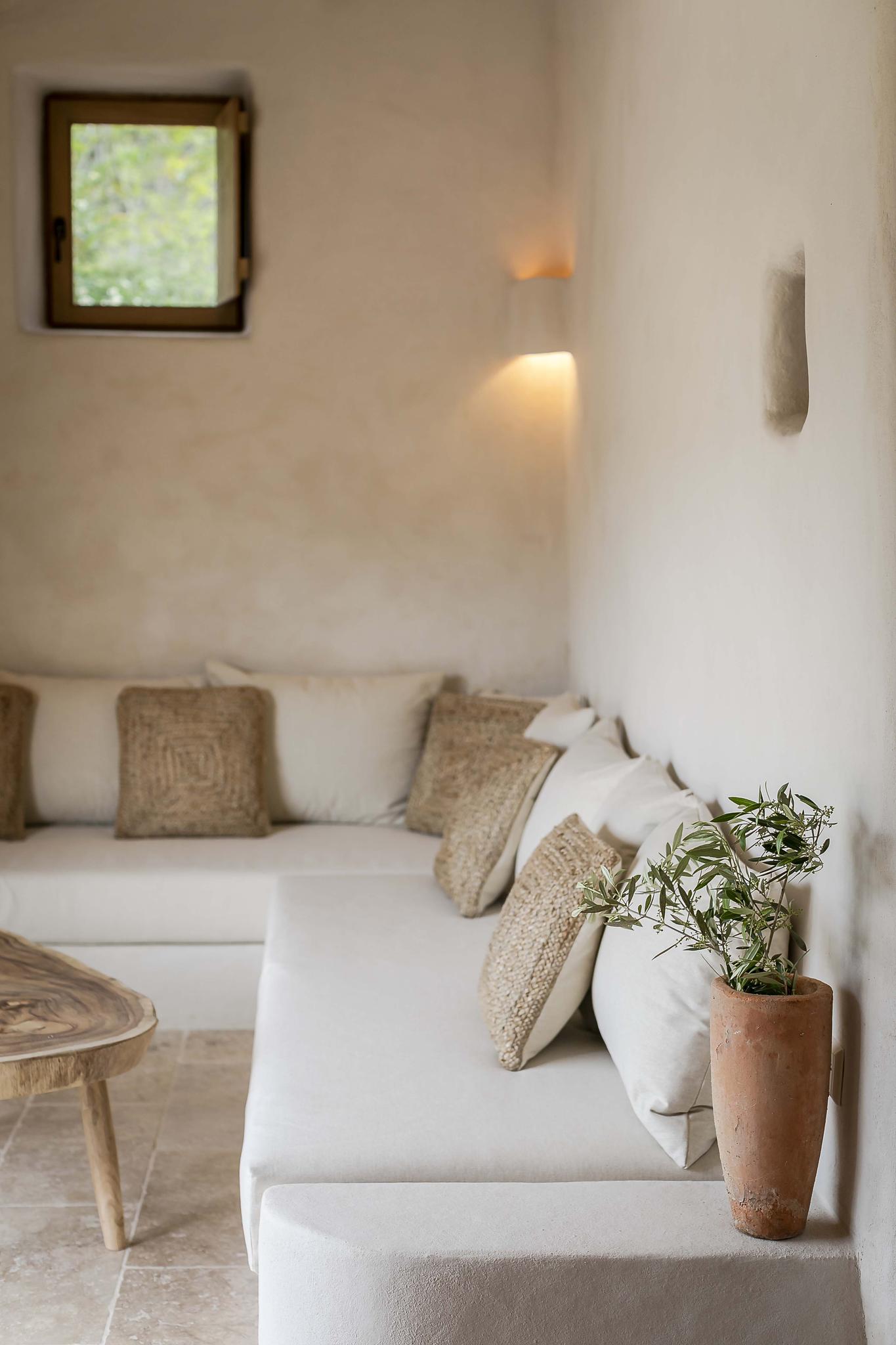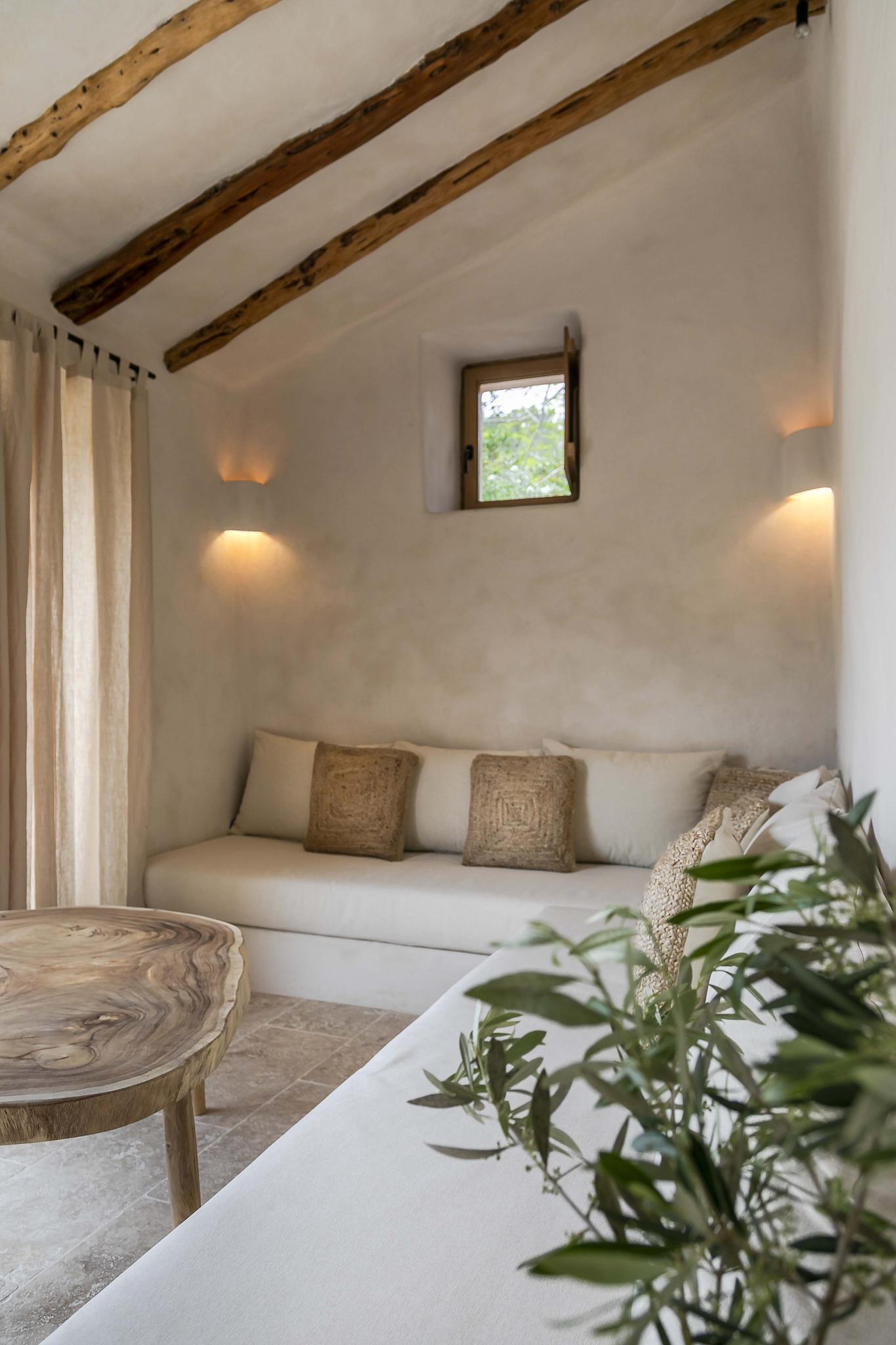 The white-washed, mineral-painted Ibicencan main house has been the heart of Can Martí valley, consisting of 42 acres of agricultural land, for over 400 years. Honouring its history in design as well as cultivation, centuries of agricultural heritage live on here at Finca Can Martí.