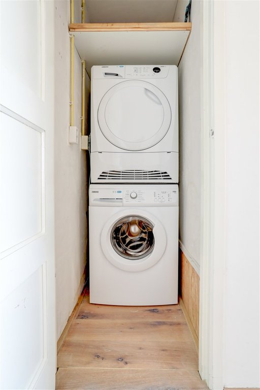At the front, there is an extra room with large built-in wardrobe that could function as an office. Also, a cupboard with washer and dryer is located on this floor.