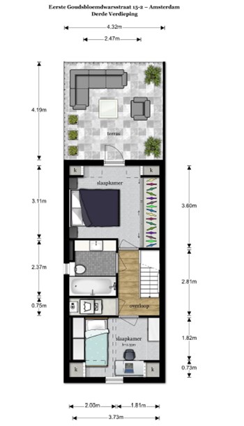The Eerste Goudsbloemdwarsstraat is located between the Brouwersgracht and the Lindengracht.