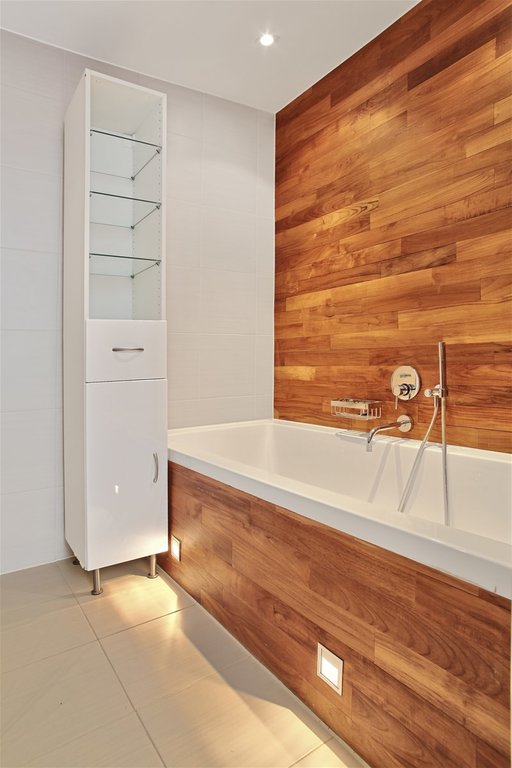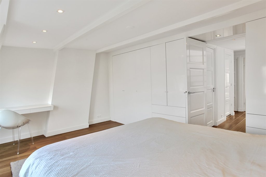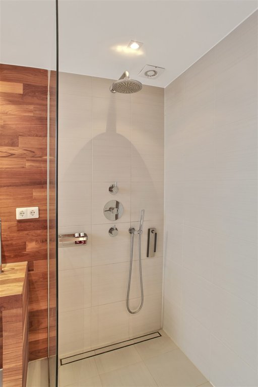 The three bedrooms and bathroom are on the fourth floor. The master bedroom is situated on the rear side of the apartment and has large built-in wardrobes. The bathroom is situated in the middle of the fourth floor and has a bath, separate shower and a double sink. Also on this floor, you will find a separate toilet.