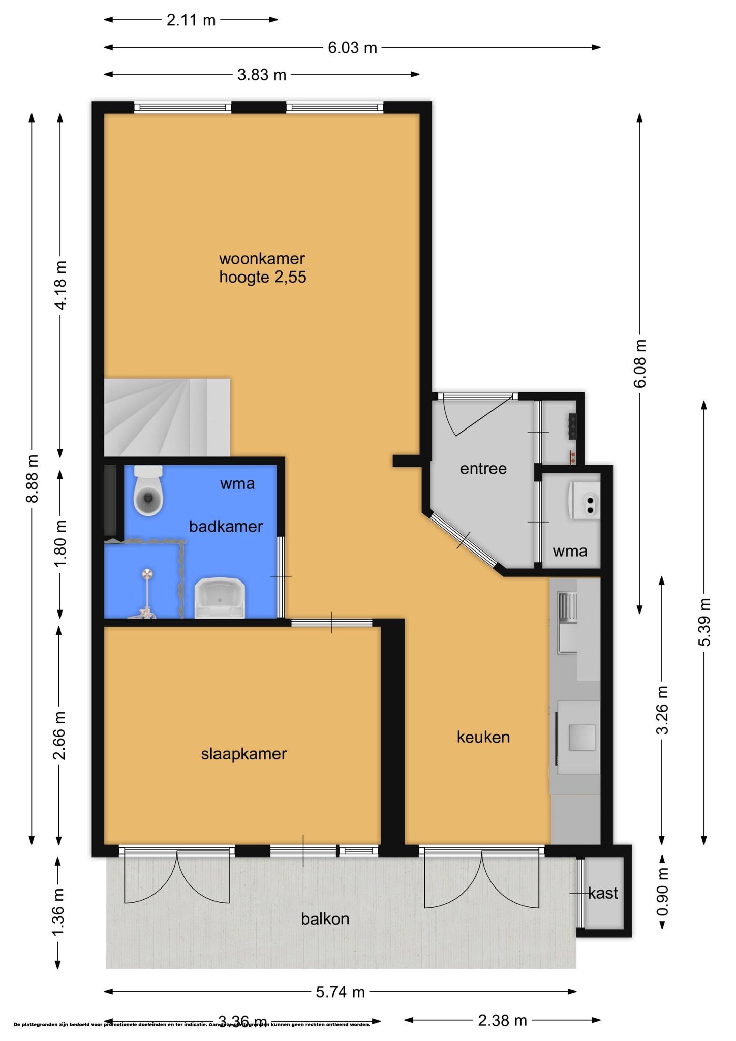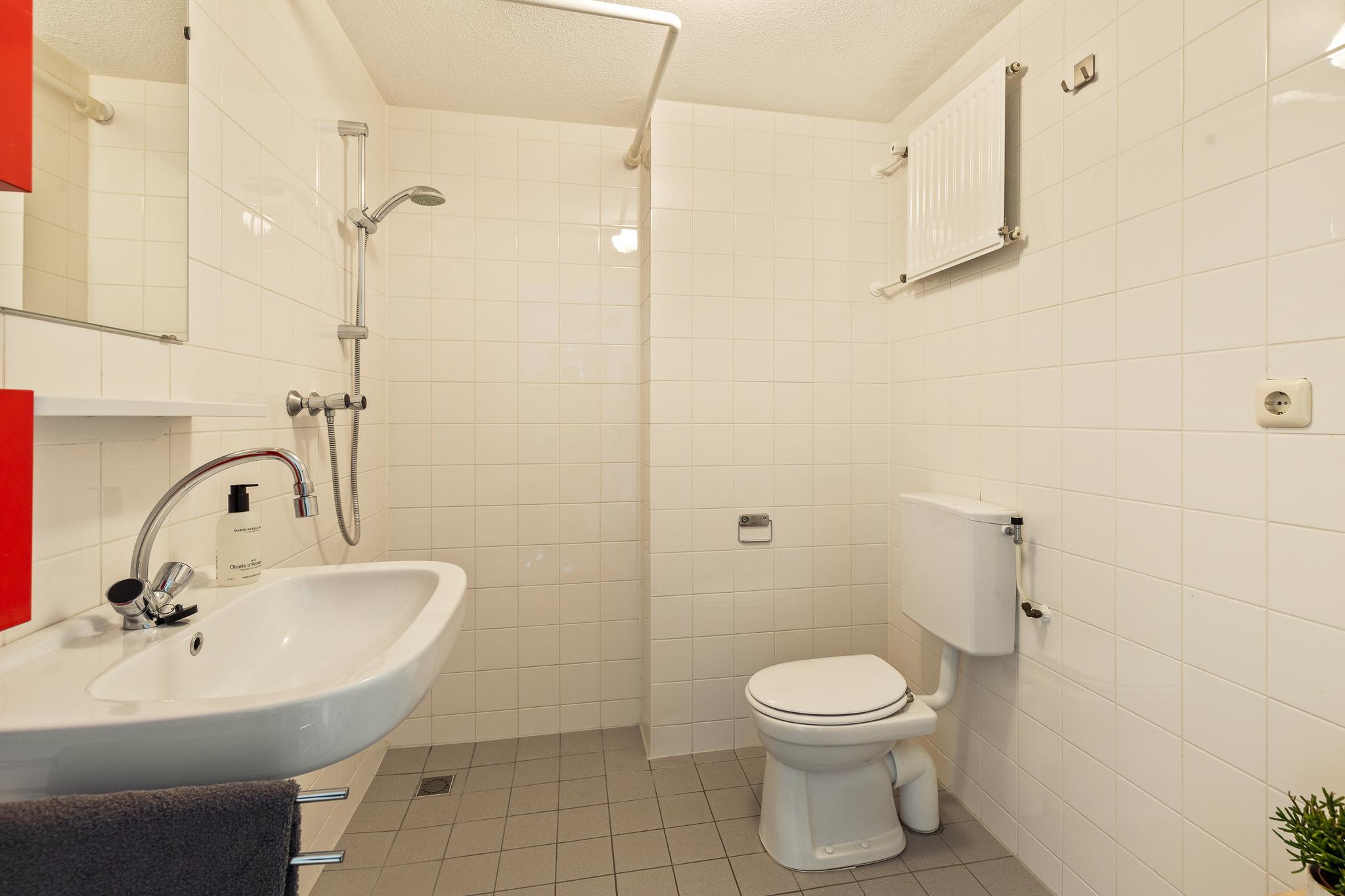 A beautiful wide staircase gives access to the entrance of the house on the second floor where the wardrobe and storage space is (with washer and dryer connections). This floor has a spacious, bright living room with open kitchen adjacent to the balcony (west). The bedroom is located at the rear and in the middle a bathroom. The bathroom has a shower, sink, toilet.
