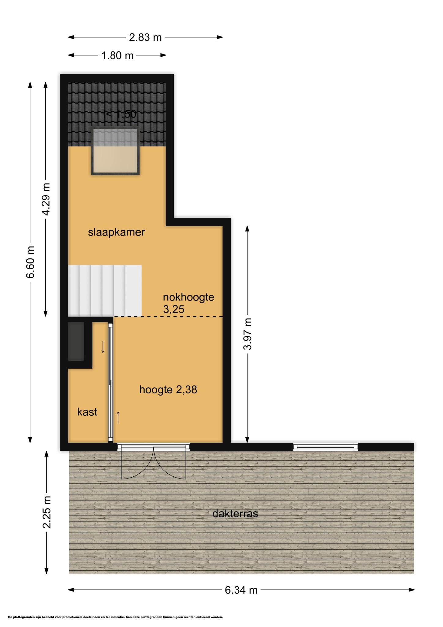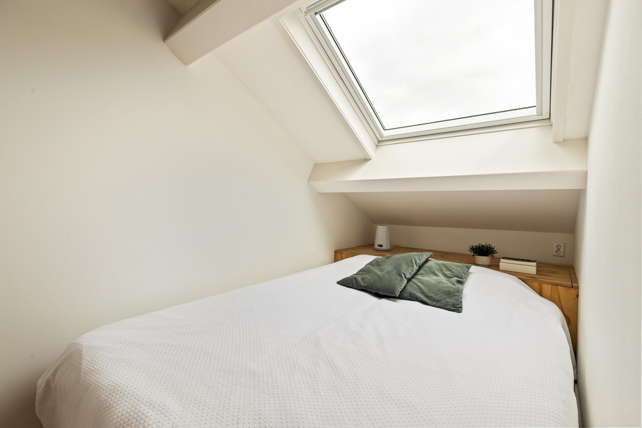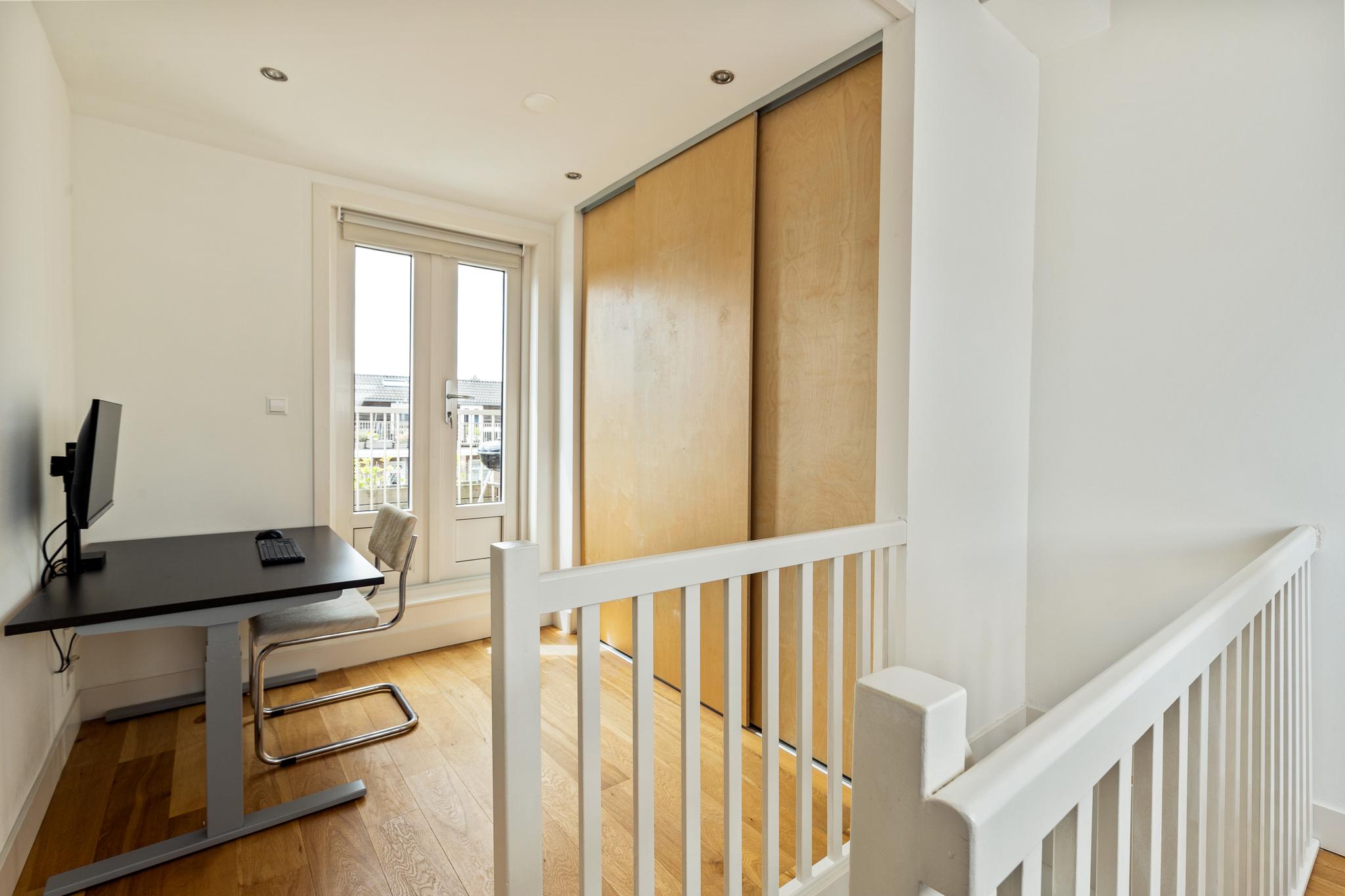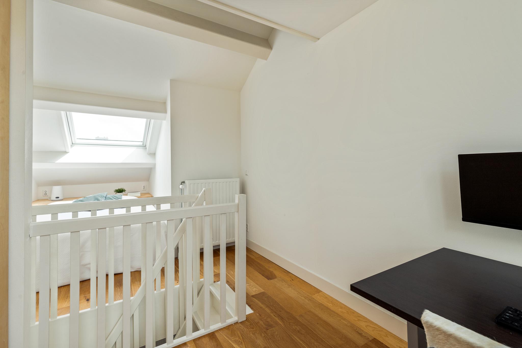 On the third floor is a very bright bedroom (ridge height 3.25 m) with work and storage space and it provides access to the roof terrace. From both the balcony and the roof terrace there is a beautiful view over the well maintained courtyard.