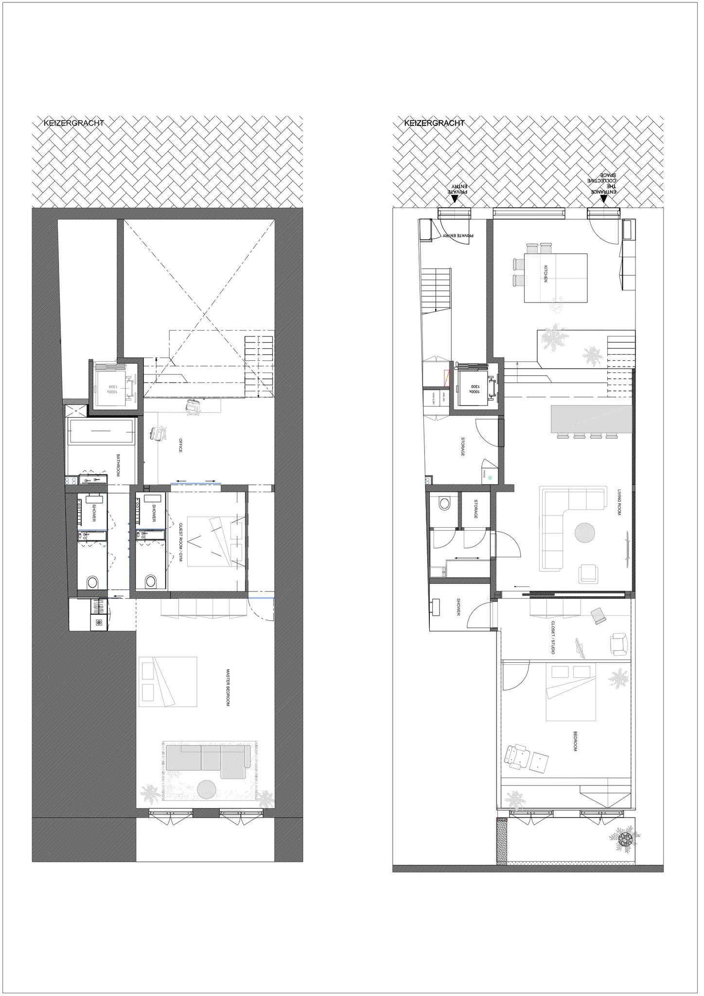 This flexible 217 m2 living/working space extends over two floors and is located on a beautiful stretch along the Keizersgracht. Thoughtfully renovated, with a subtle nod to Japanese design, it can morph from office to showroom to gallery to home, with the possibility for three bedrooms.