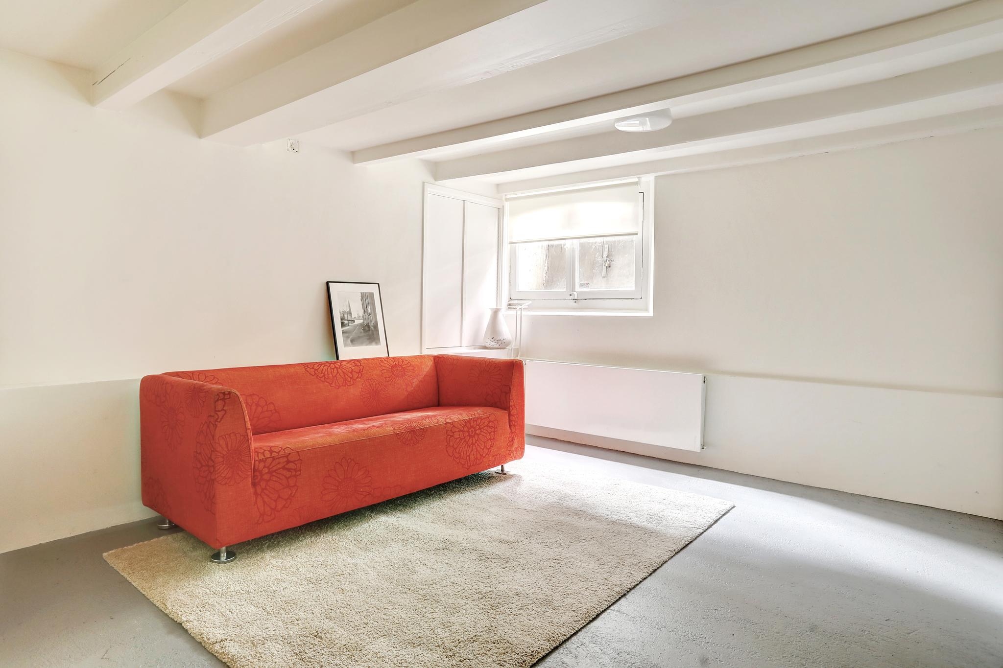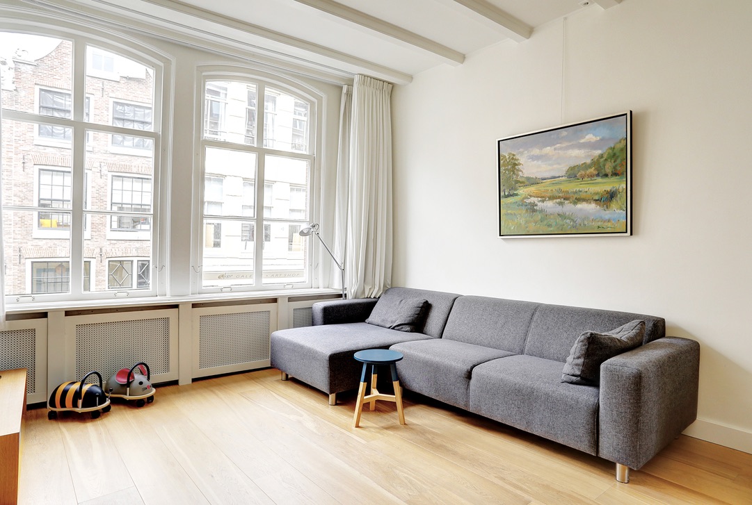 Comfortable living room with two large windows at the front overlooking the picturesque Kerkstraat. The rear side provides a great view of the beautiful courtyard gardens.