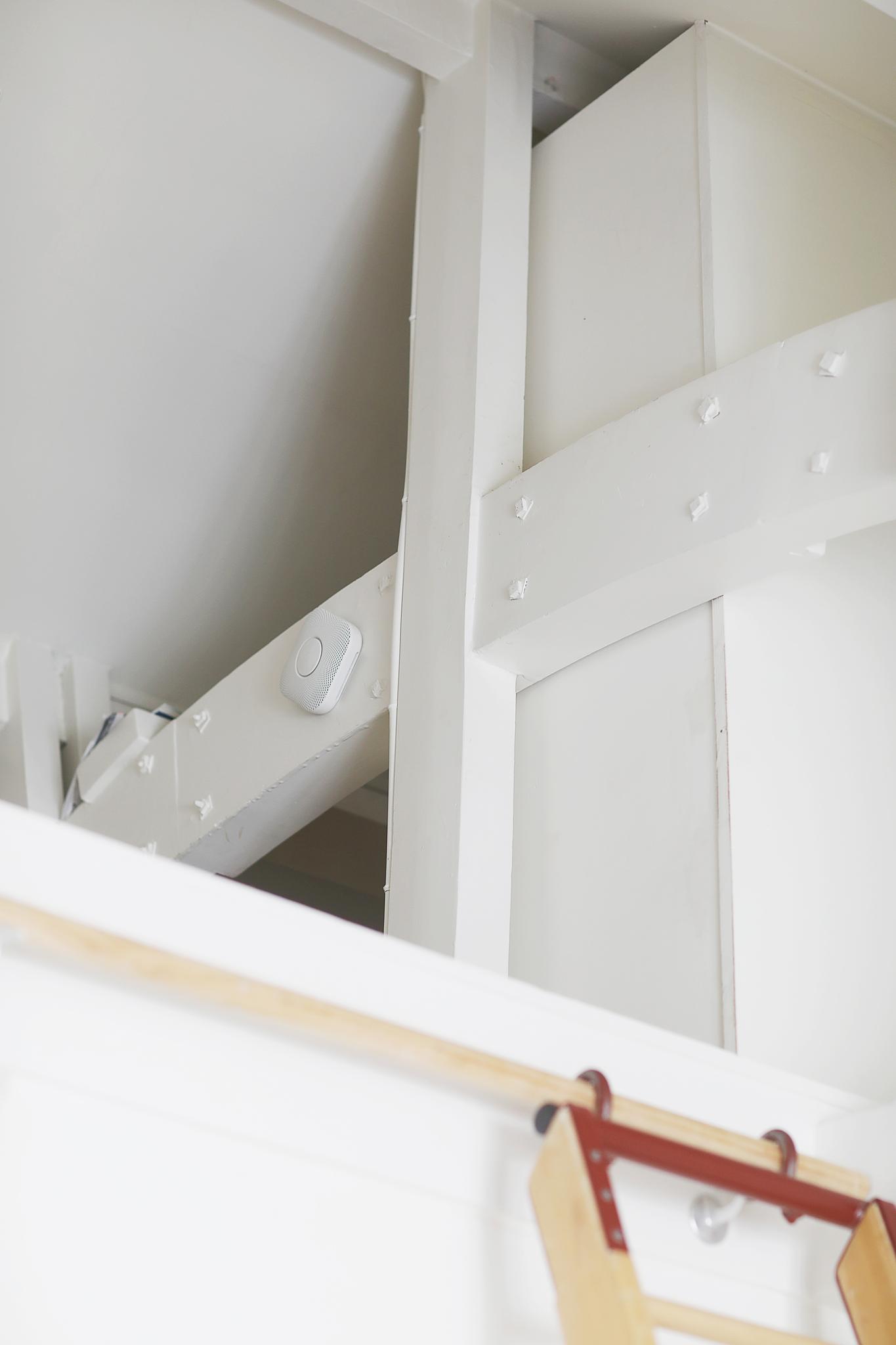 Two well-sized bedrooms and a second bathroom located in the middle, equipped with a walk-in shower, sink and toilet. This floor also features a walk-in closet and access to an attic under the roof.