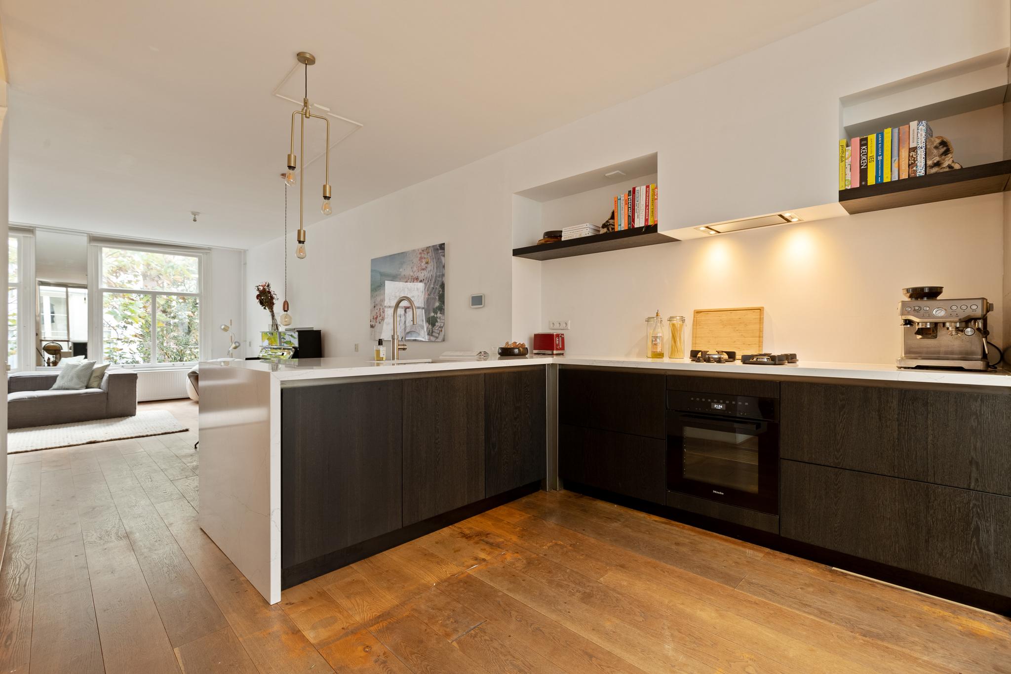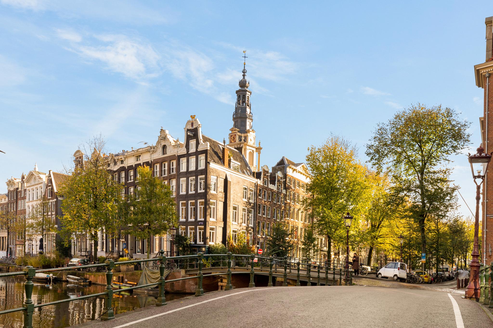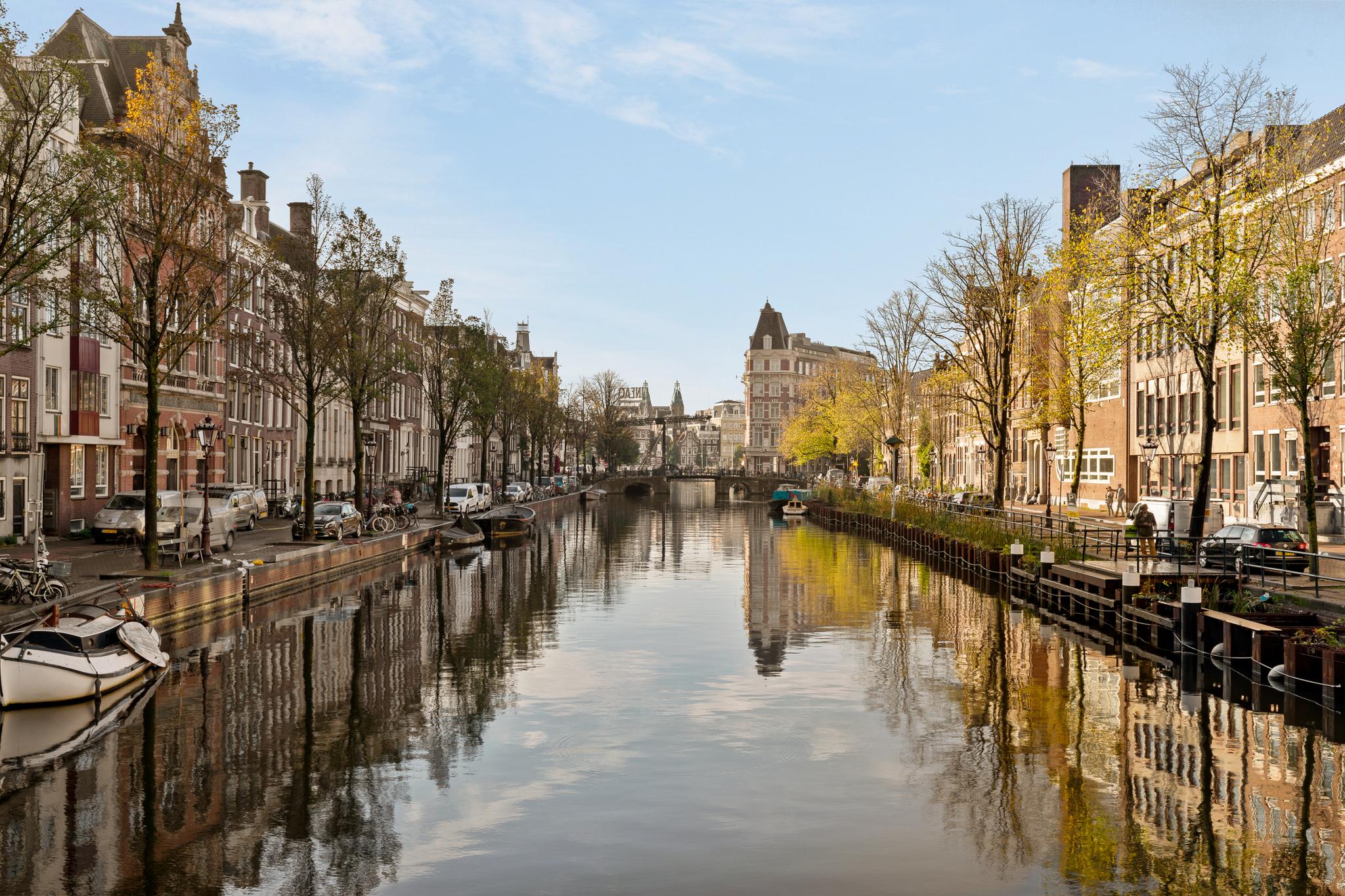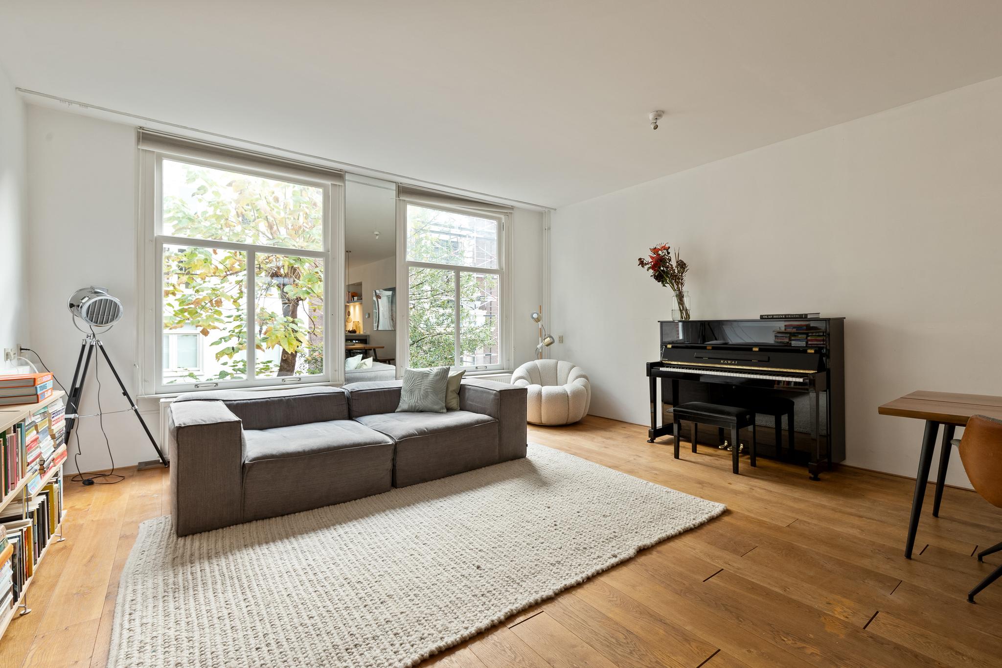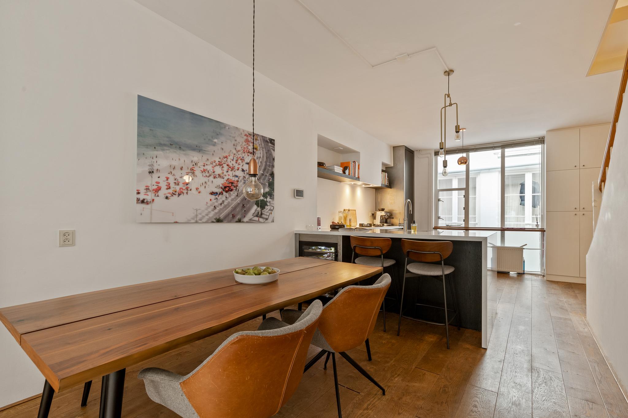 In the historic center of Amsterdam, this very bright apartment of 112 m2 is located in the back house of a monumental building from 1800. The apartment has two bedrooms and two roof terraces.