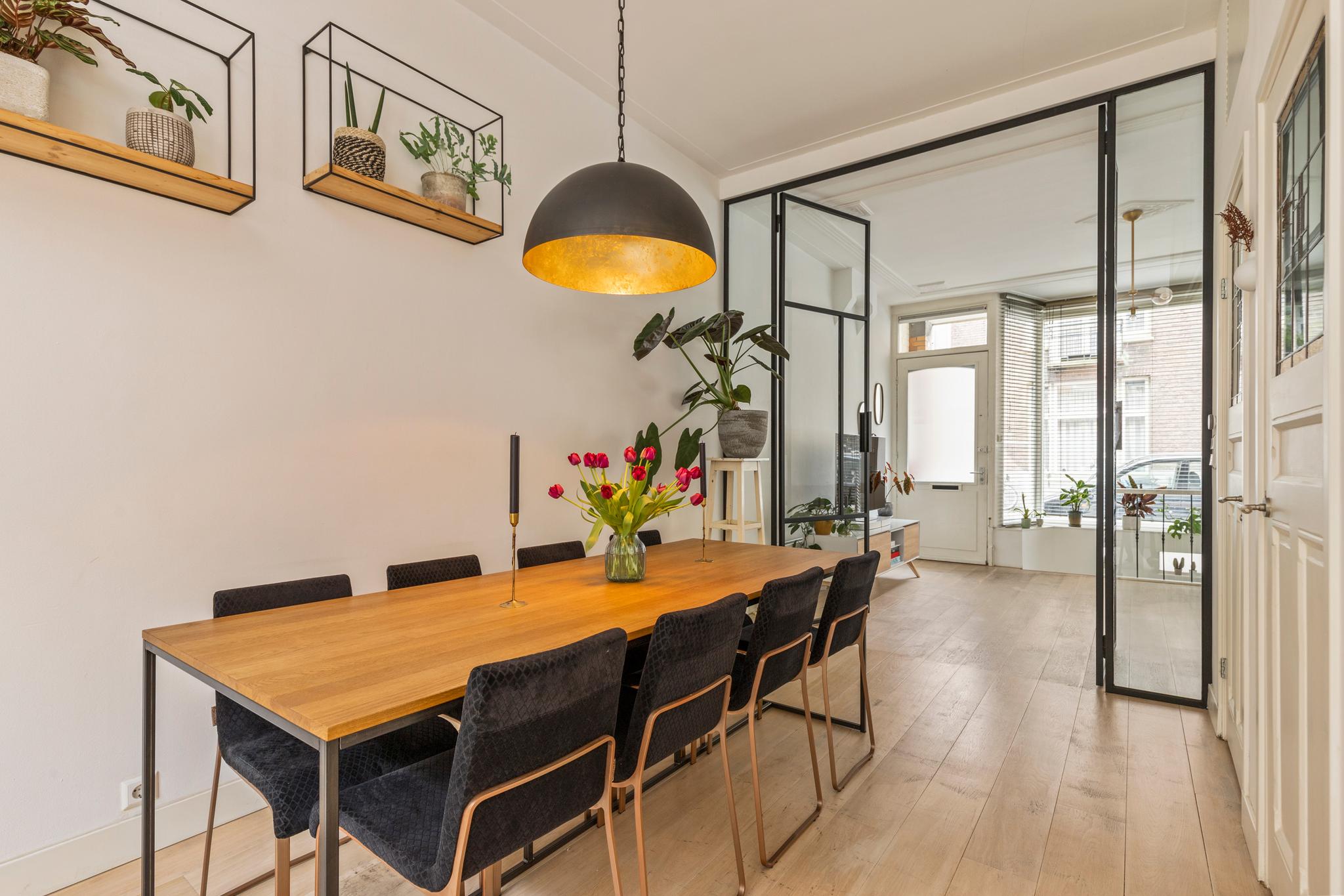 In a former button store in a quiet street of the popular Pijp, is this stylishly renovated apartment with a usable area of approximately 71 m2. The property is located on the first floor and has a lovely patio terrace of approximately 14 m2. The basement located (bed) room, toilet and storage (total 23.