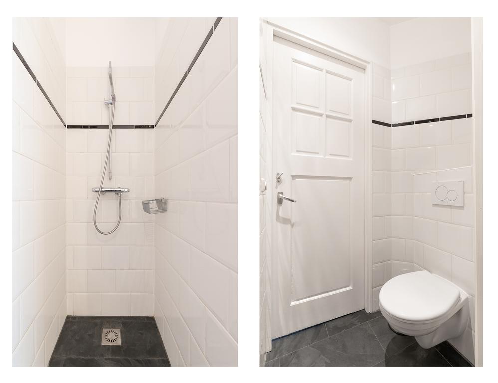 – The two bedrooms are situated on the quiet rear side of the apartment. The bathroom is adjacent to the first bedroom and is provided with a spacious shower and bathtub.