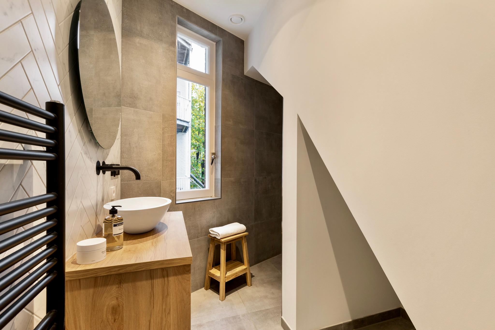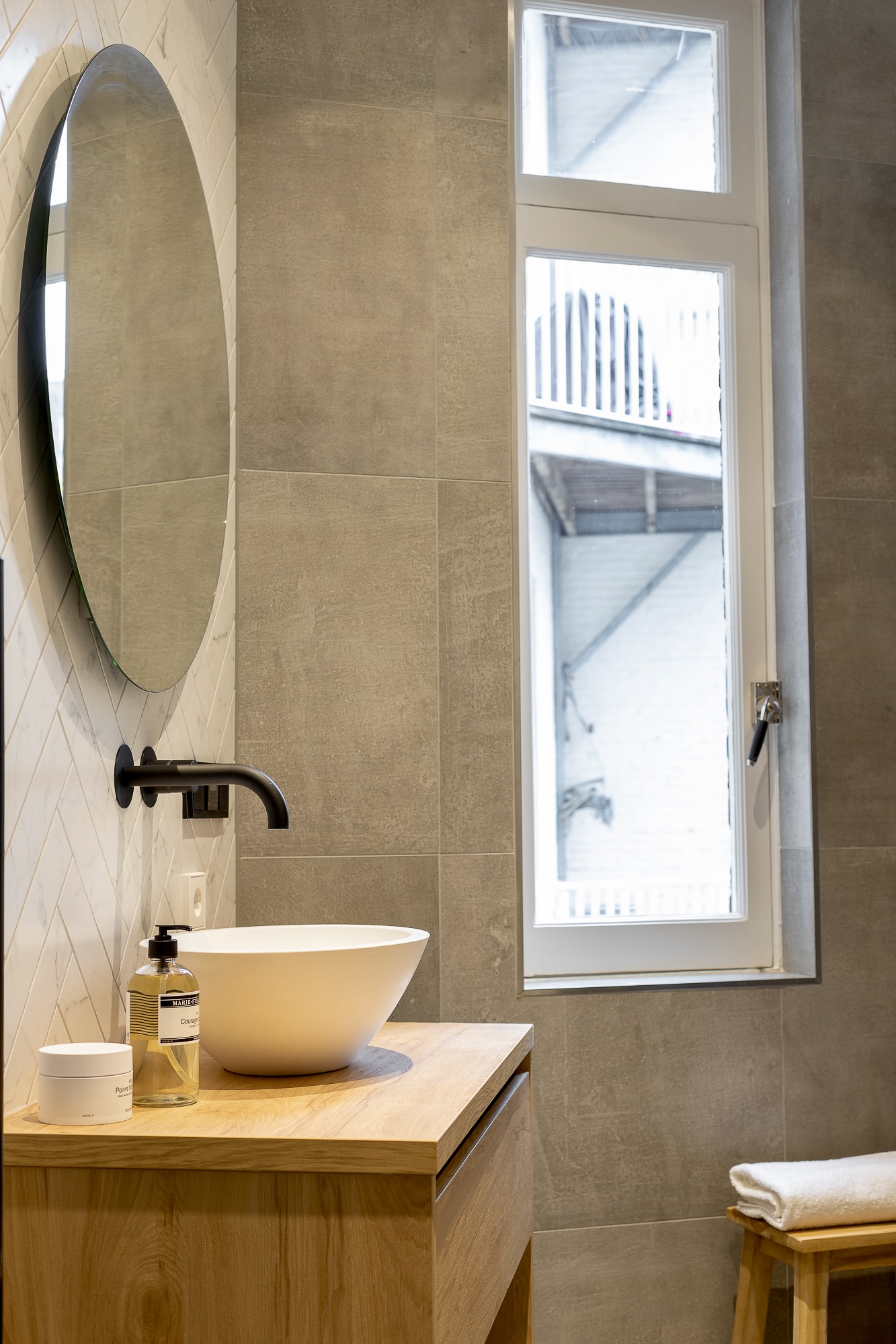 The modern kitchen features luxury Bosch appliances and a Quooker faucet and is directly connected to the living room with a characteristic bay window at the front. The view from the living room can be considered unique due to the wedge-shaped Plane trees, which give the street its very distinctive look.