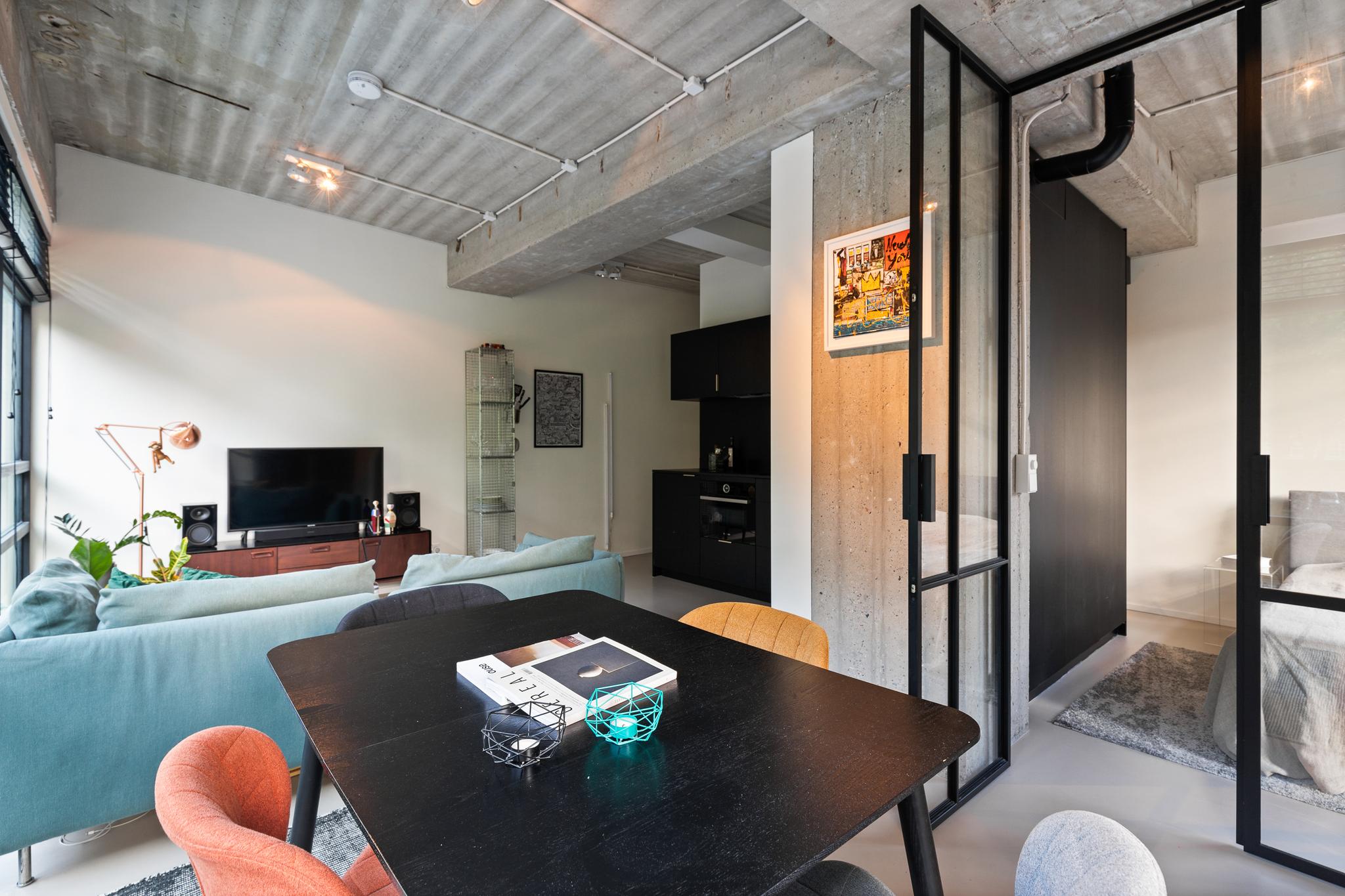 Beautifully finished industrial corner apartment of approximately 44 m2 with a balcony, located in a quiet neighborhood near the Rembrandtpark and Hoofddorpplein.