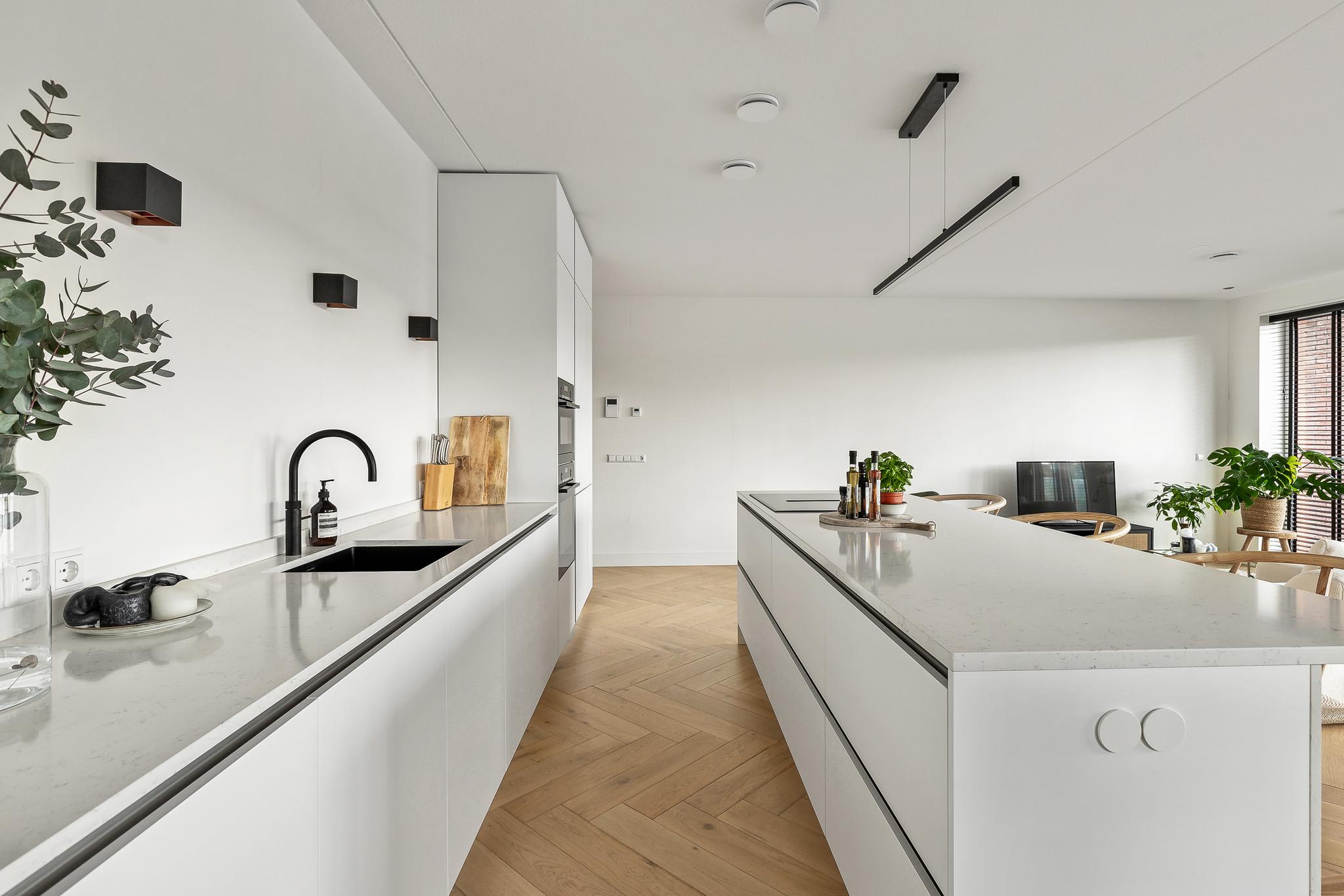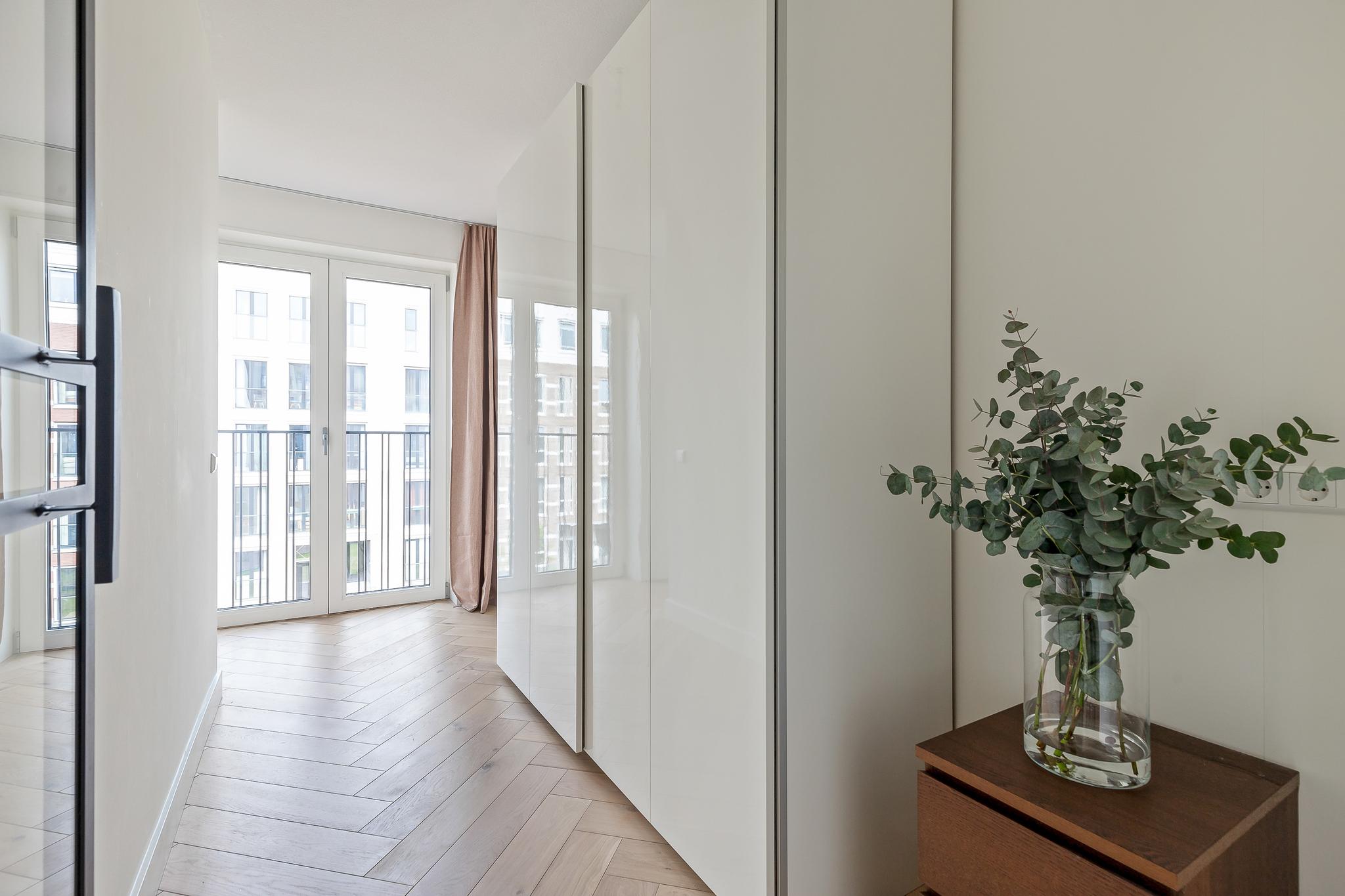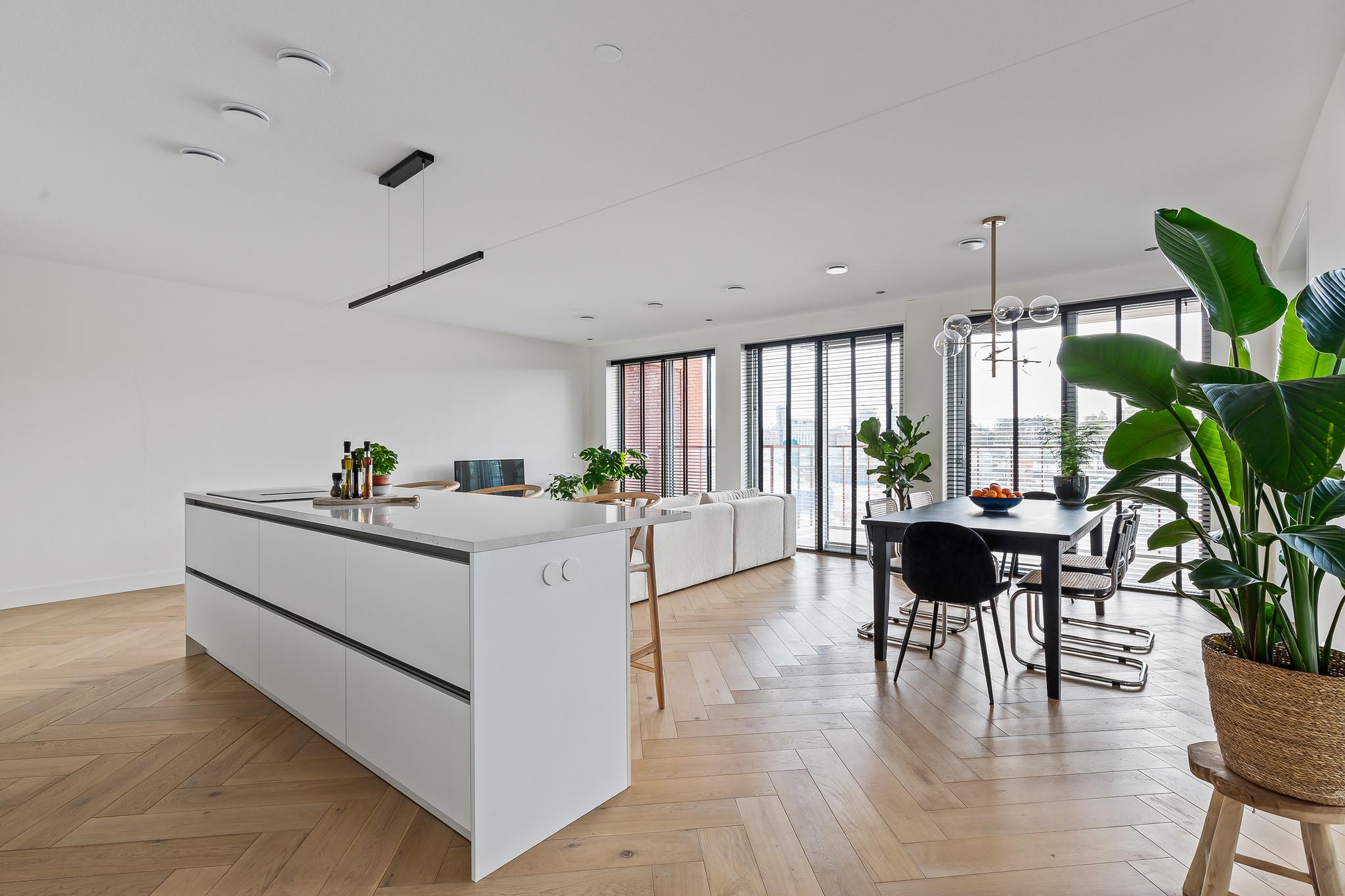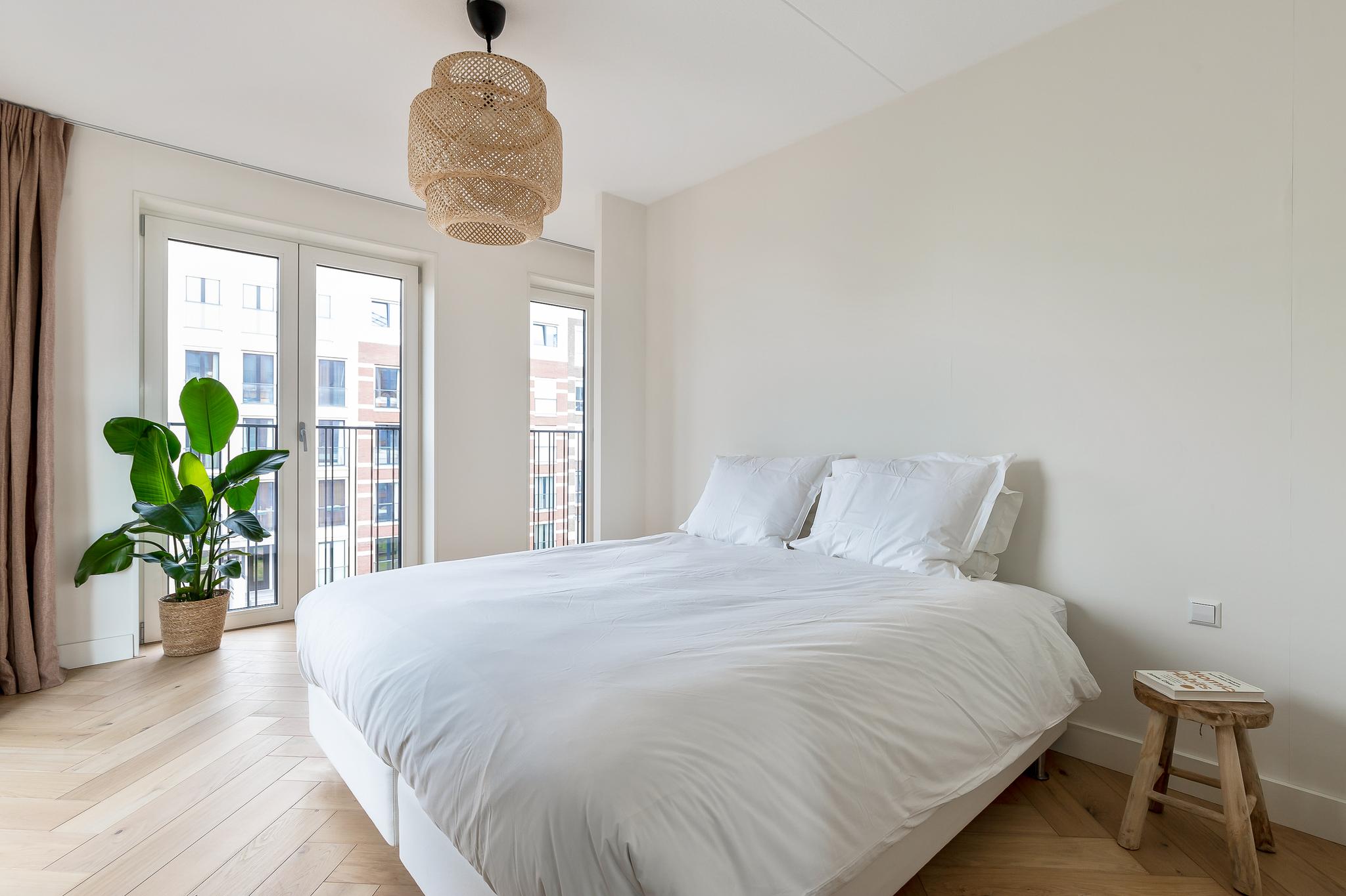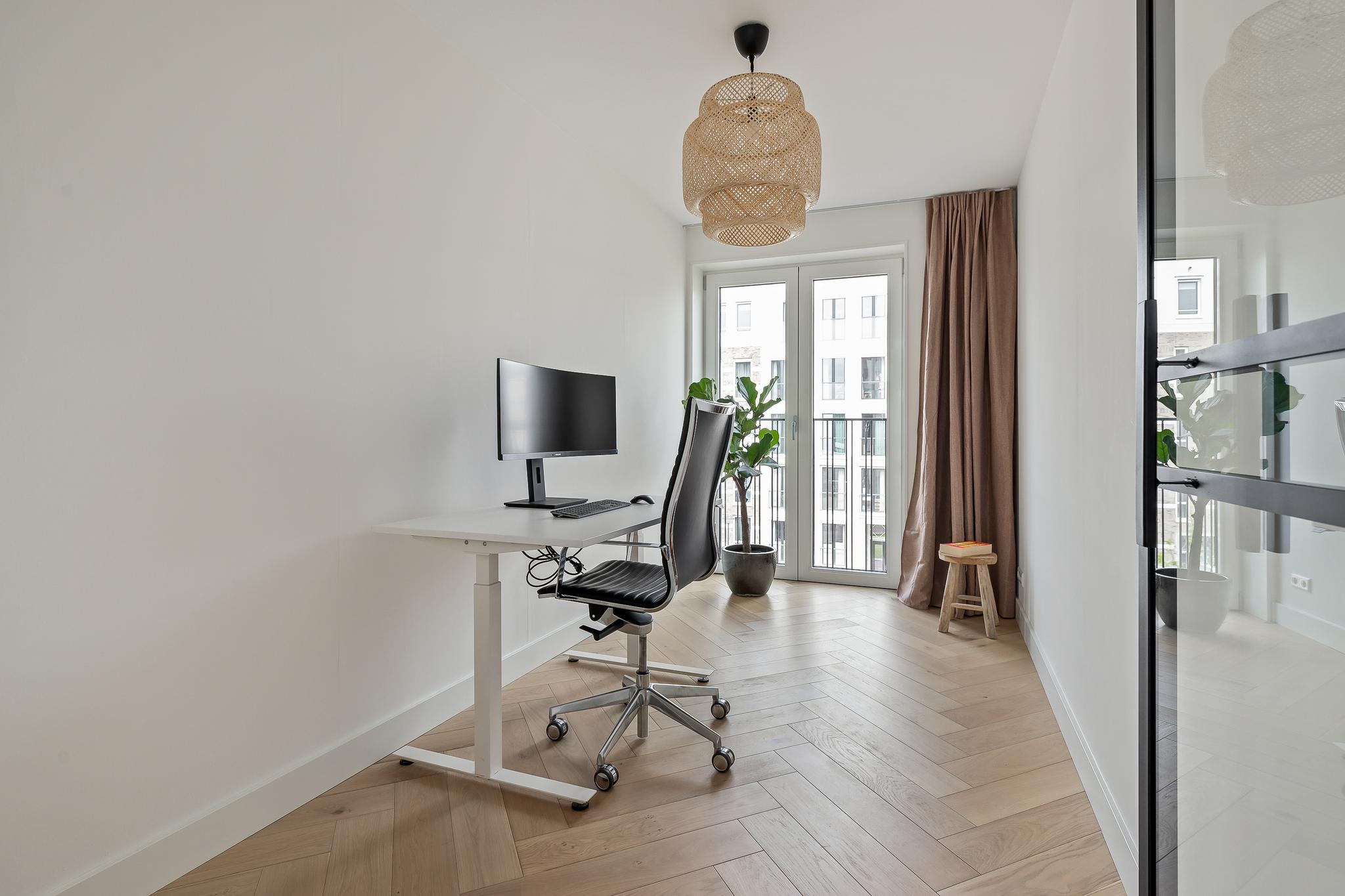 High quality finished, lovely bright corner house of approximately 110 m2 located on the 3rd floor of a new building complex in the climate neutral district of Houthavens. The apartment features a spacious terrace facing southeast and has a total of 3 bedrooms.