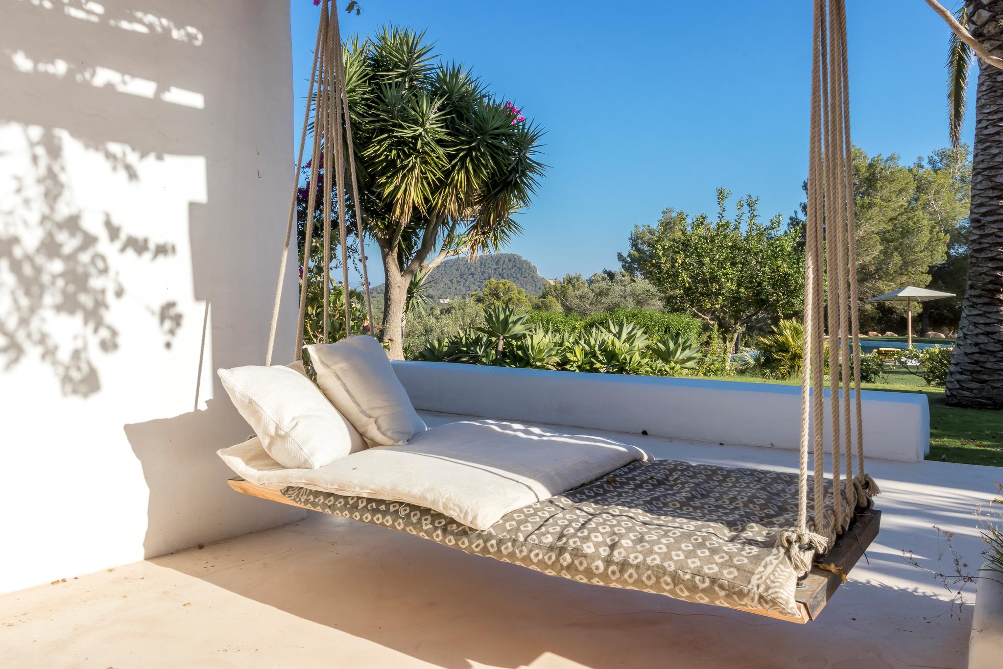Surrounded by colourful bougainvillea and ancient olive trees, recently refurbished Miraflores immerses you in rural Ibiza. Seclusion is sewn into its landscape – one that echoes in its interiors too.