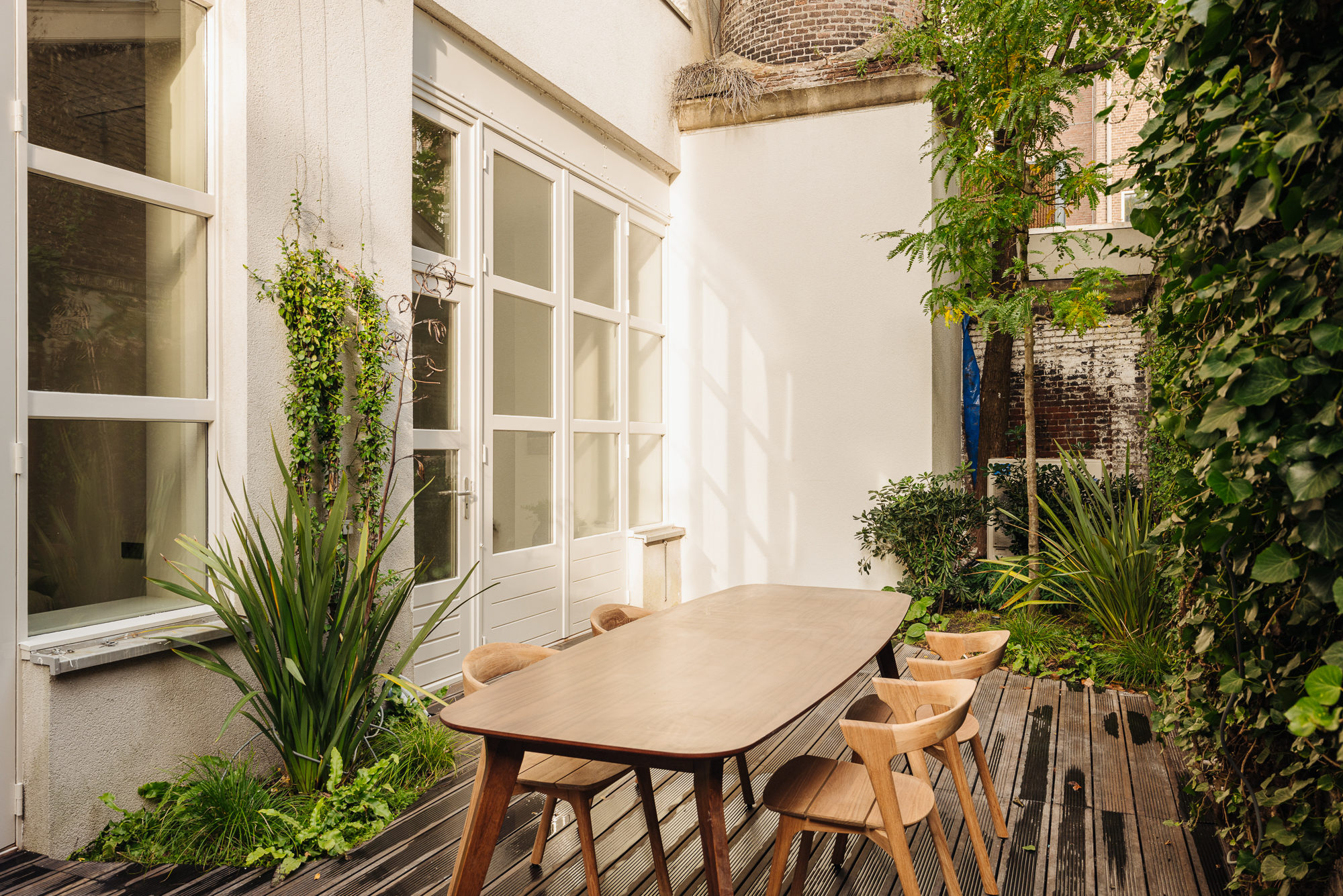 The renovation of this spectacular, turn-key ground floor canal home of 332 m² has just been completed, boasting 4 bedrooms, 3 bathrooms, and a unique urban garden. In this spacious home, the perfect balance between high-end, comfortable living and a wonderfully peaceful atmosphere has been created.