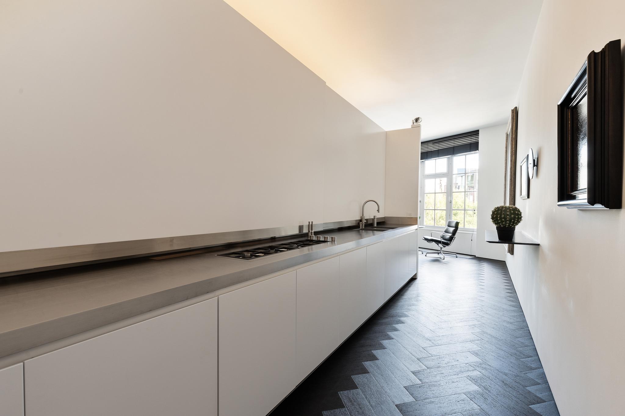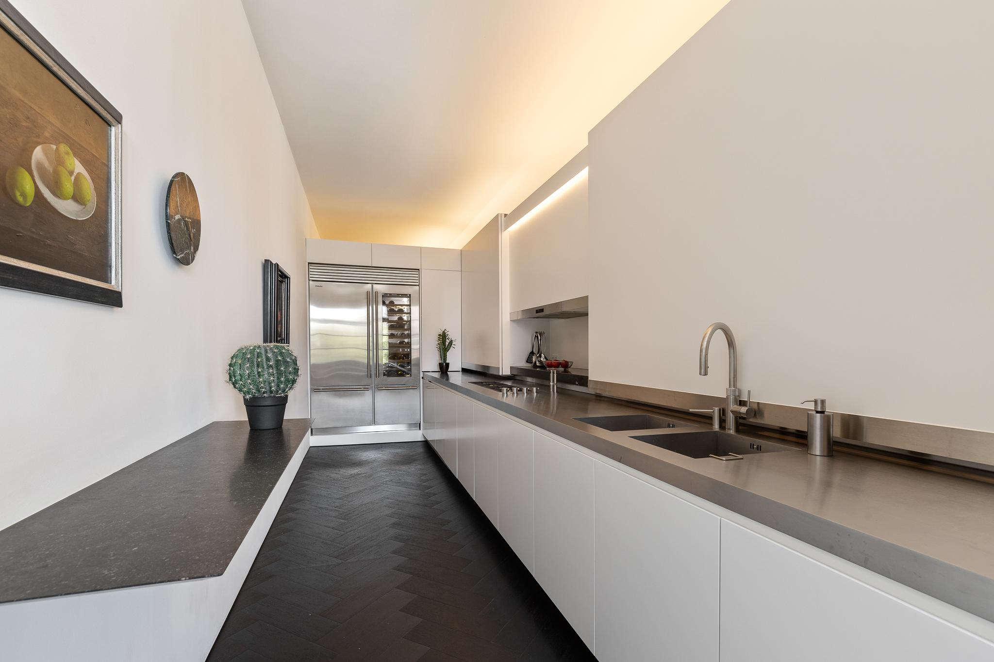 The apartment has an elevator that leads into the house and exudes an amazing feeling of luxury and craftsmanship. 4 years ago the whole apartment is, under the guidance of Atelier Markx, rebuilt in a very high quality manner and with great attention to detail. Markx optimized the original design by architect Jen Alkema in a unique way.