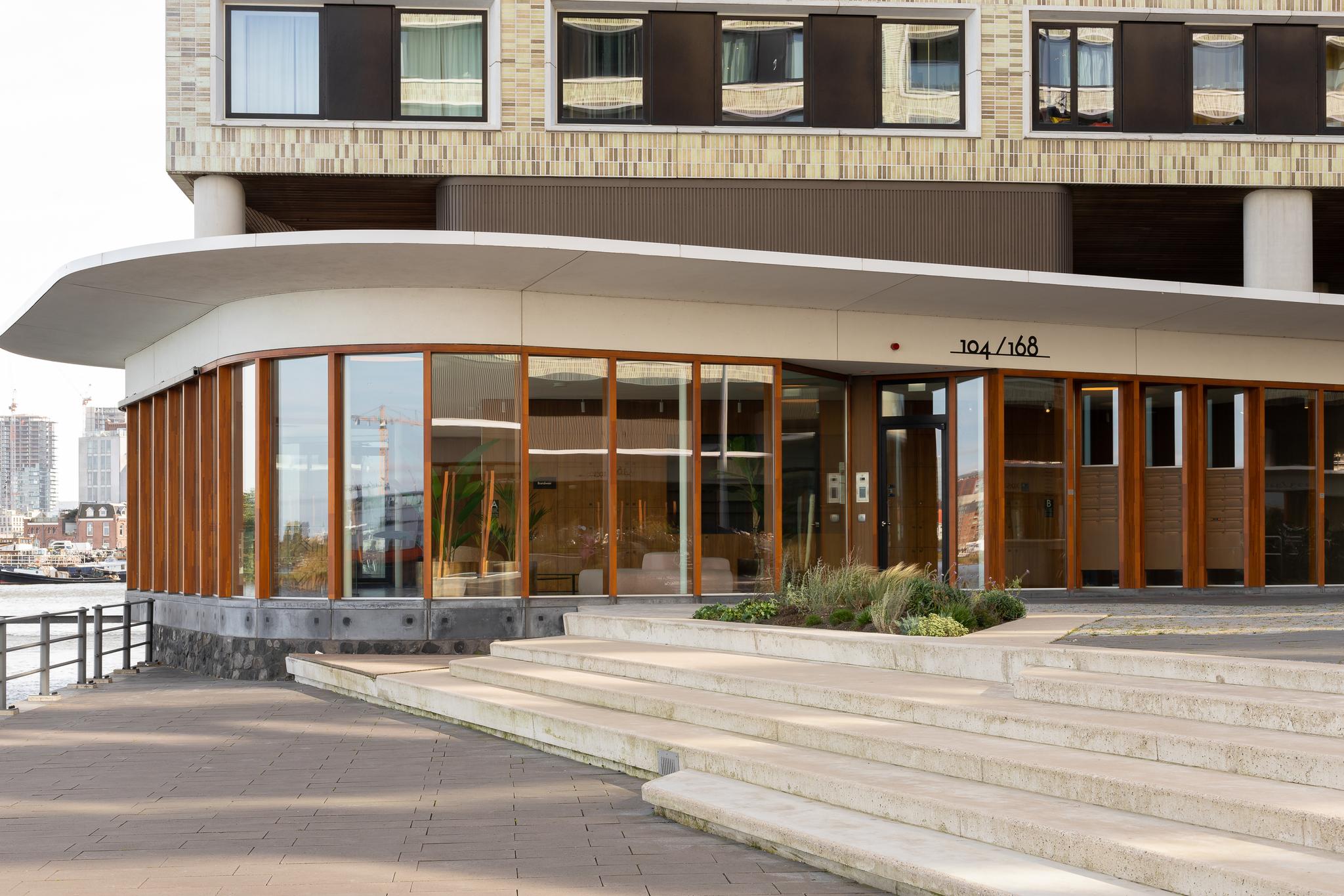 Unique and pioneering in architecture, Pontsteiger is one of the largest and highest residential buildings in Amsterdam. This grand building touches the expanse of the IJ river and rises above the Houthaven. At an altitude of 60 meters, the imposing “bridge section” of eight floors begins, with views stretching all the way to the coast. The impressive dimensions and gleaming appearance of the building make it the city’s newest eye-catcher.