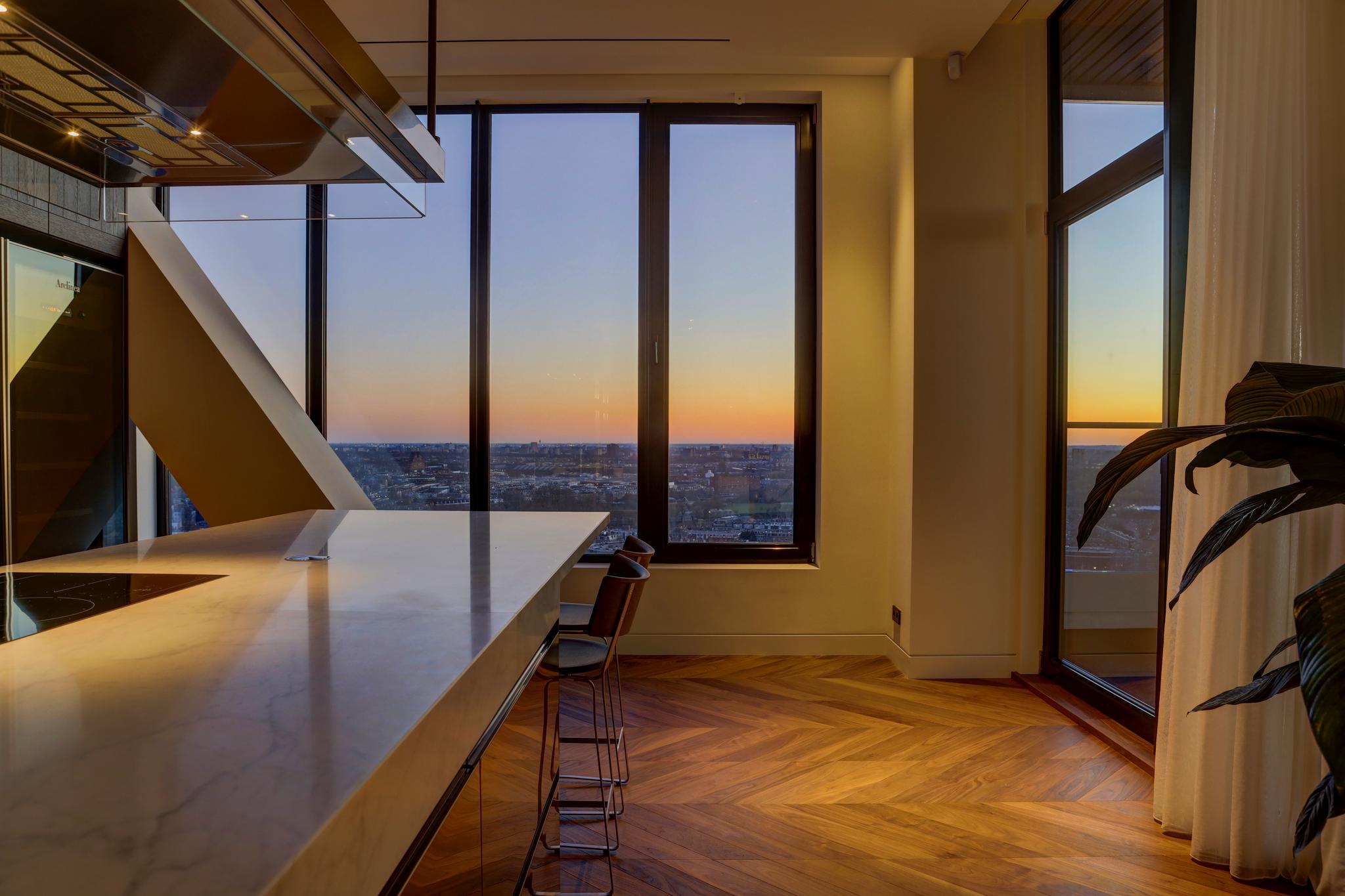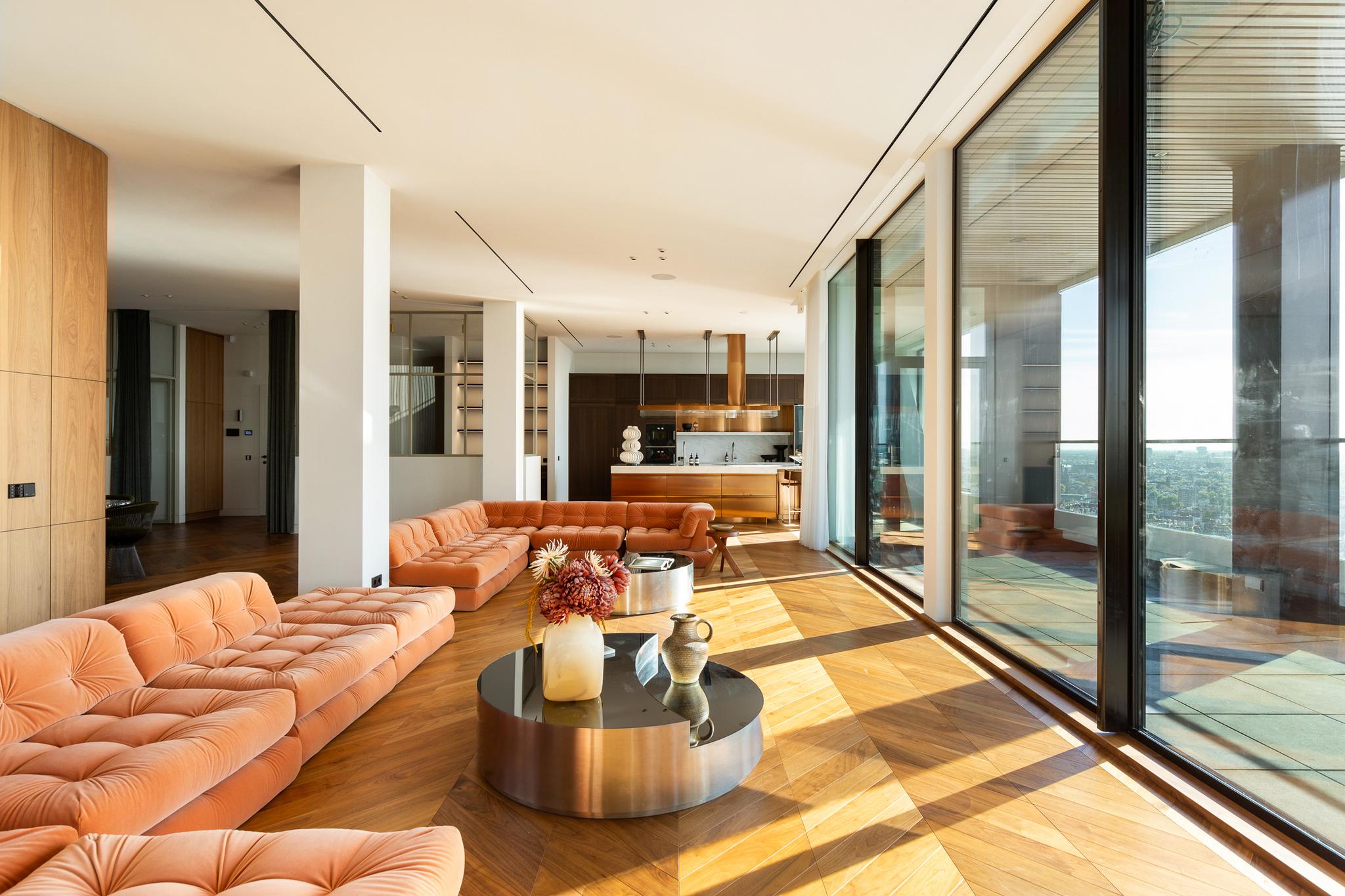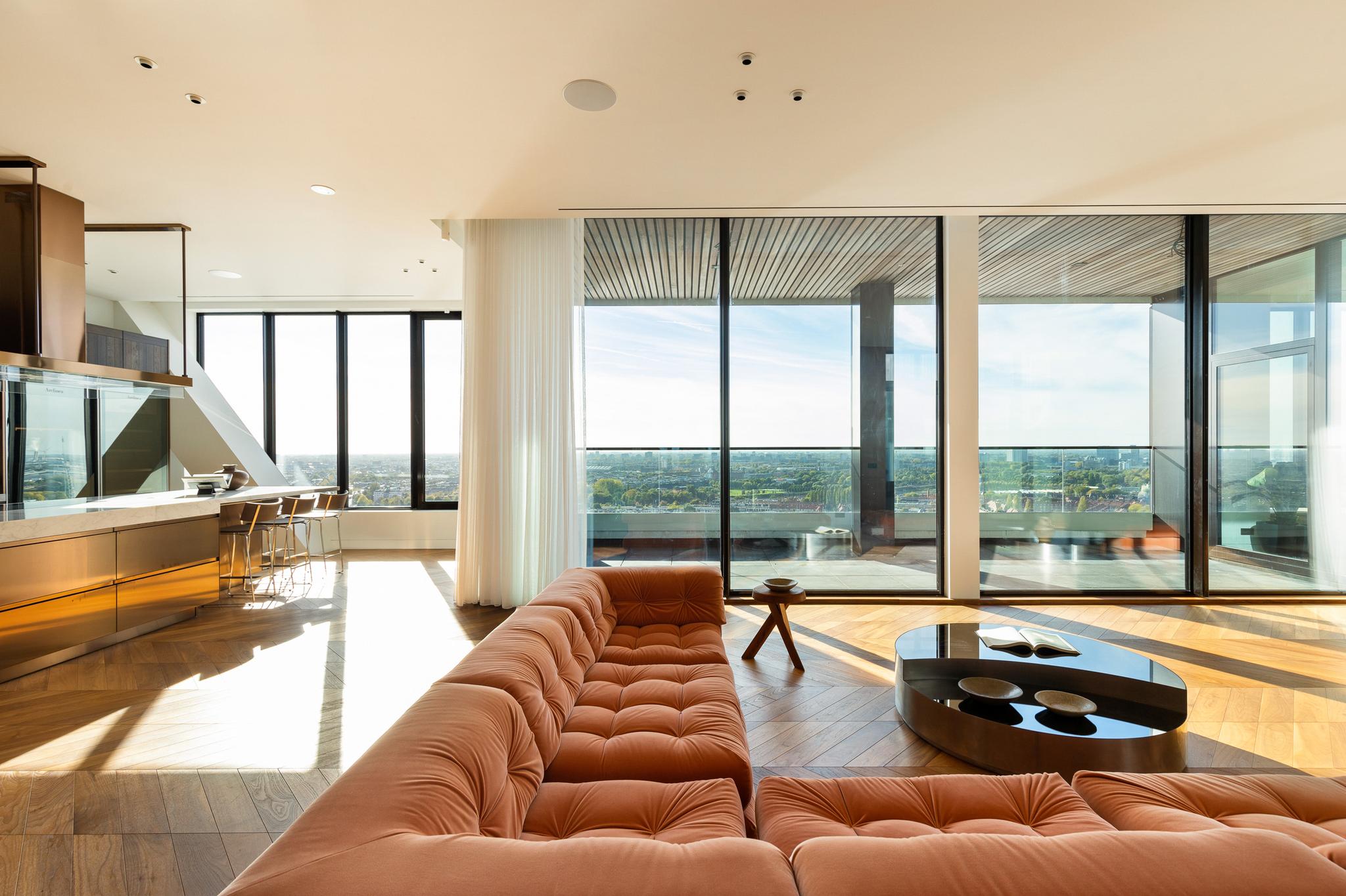 With unrivalled cinematic views of the surrounding cityscape and more than 470 m² of bright floor space, this penthouse is the definition of a new level of living in Amsterdam.