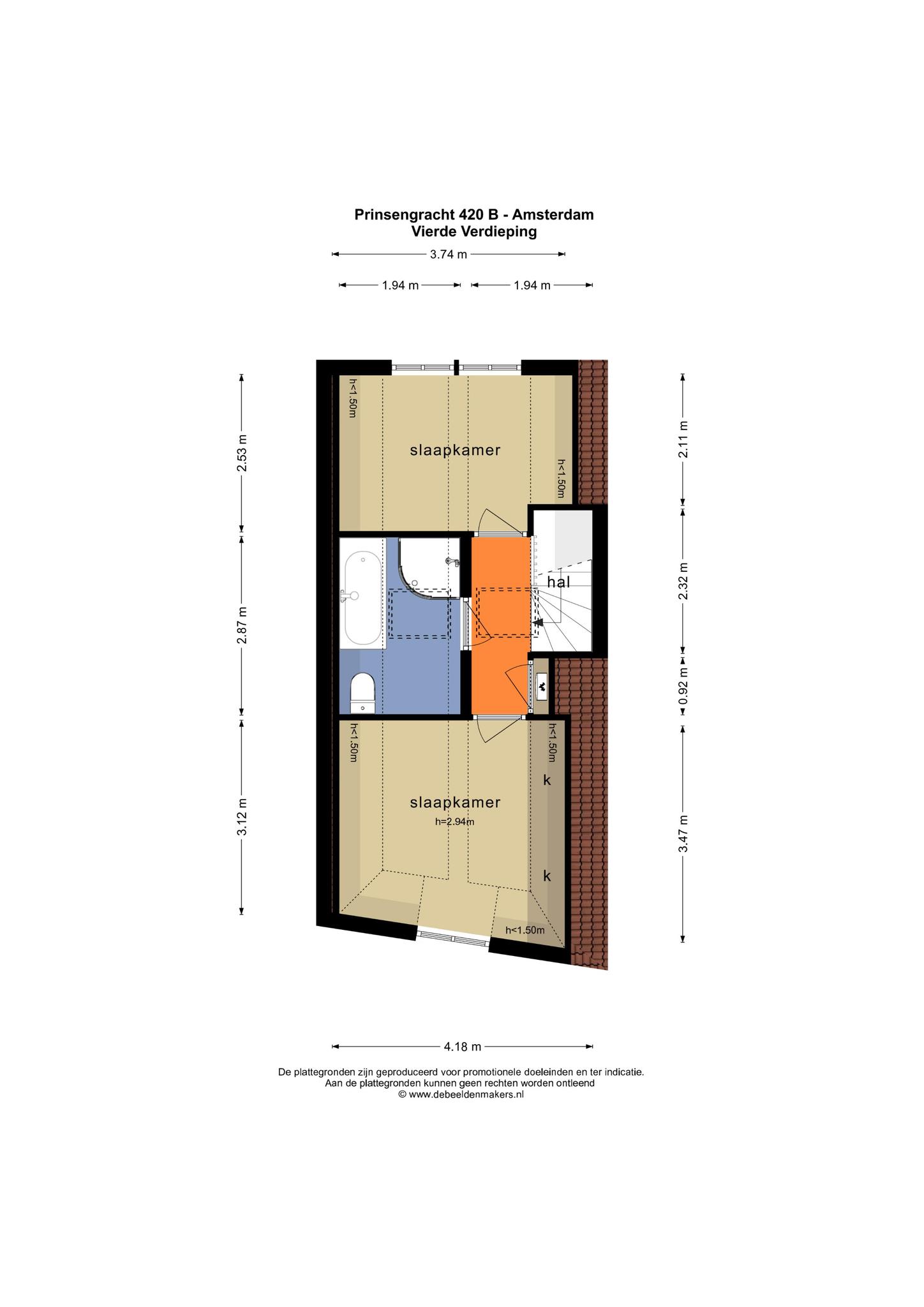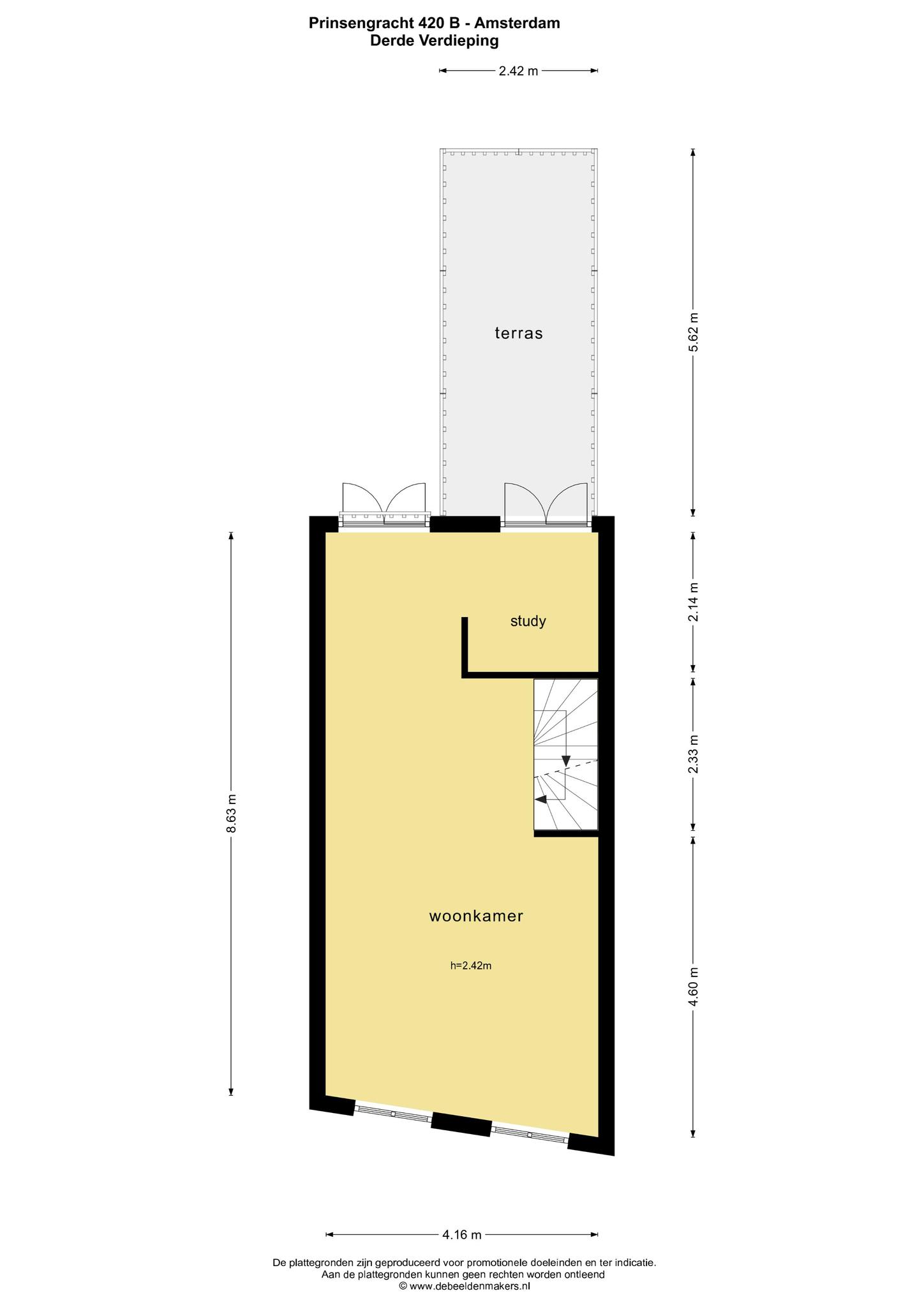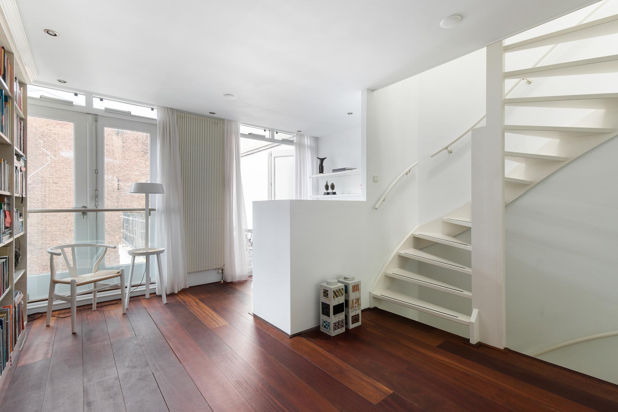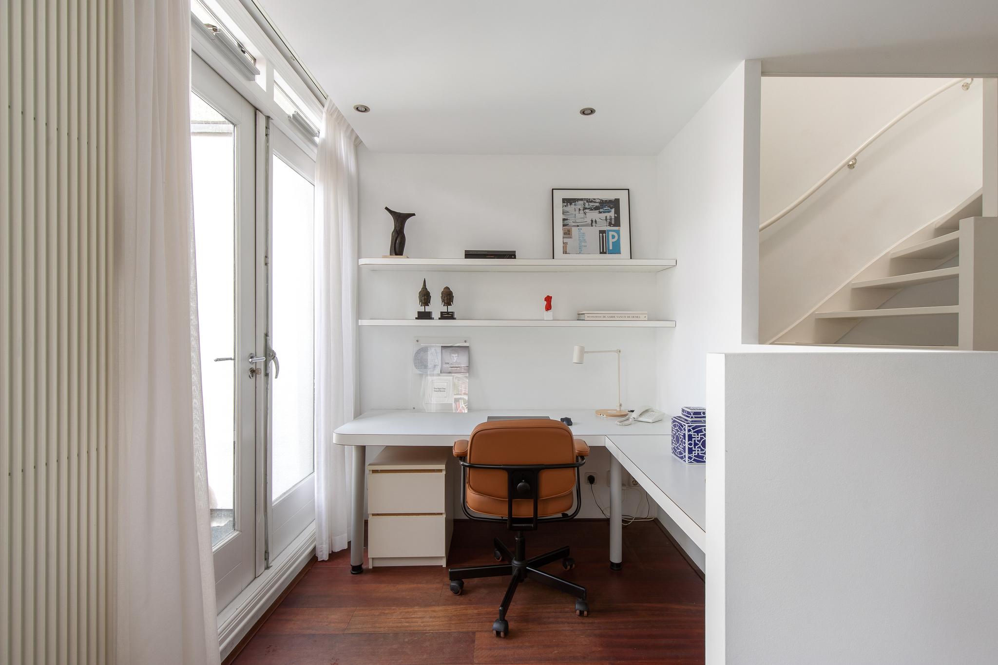 The third floor offers from the spacious living room beautiful unobstructed views over the connecting bridge between the Prinsengracht and the Leidsegracht. At the rear is a separate workspace. The roof terrace of 14 m2 (south) is through the double doors from here to enter.