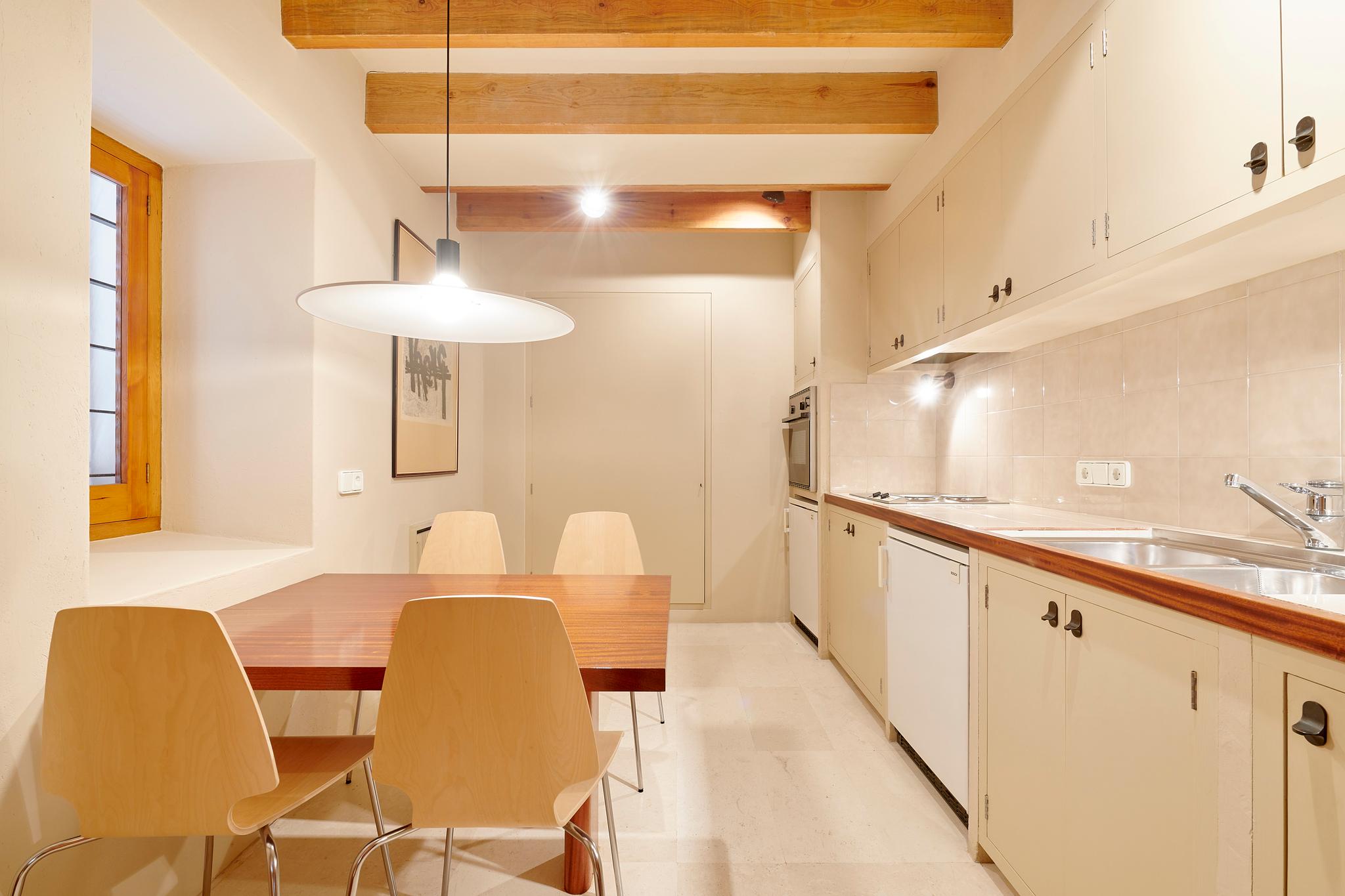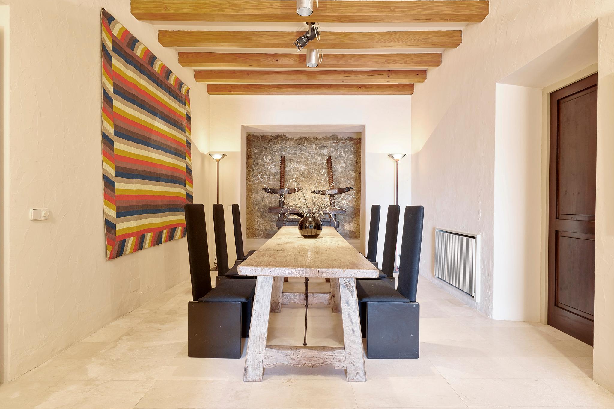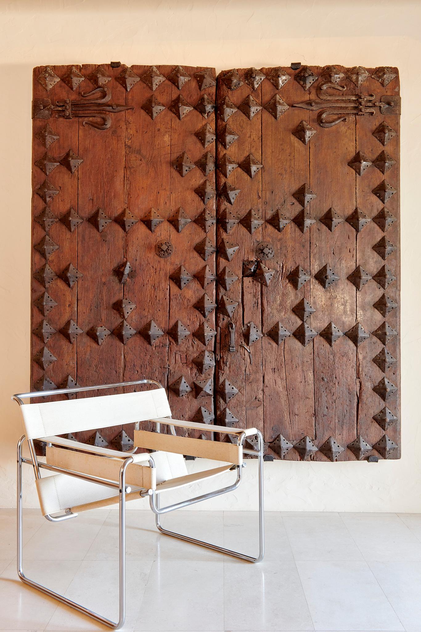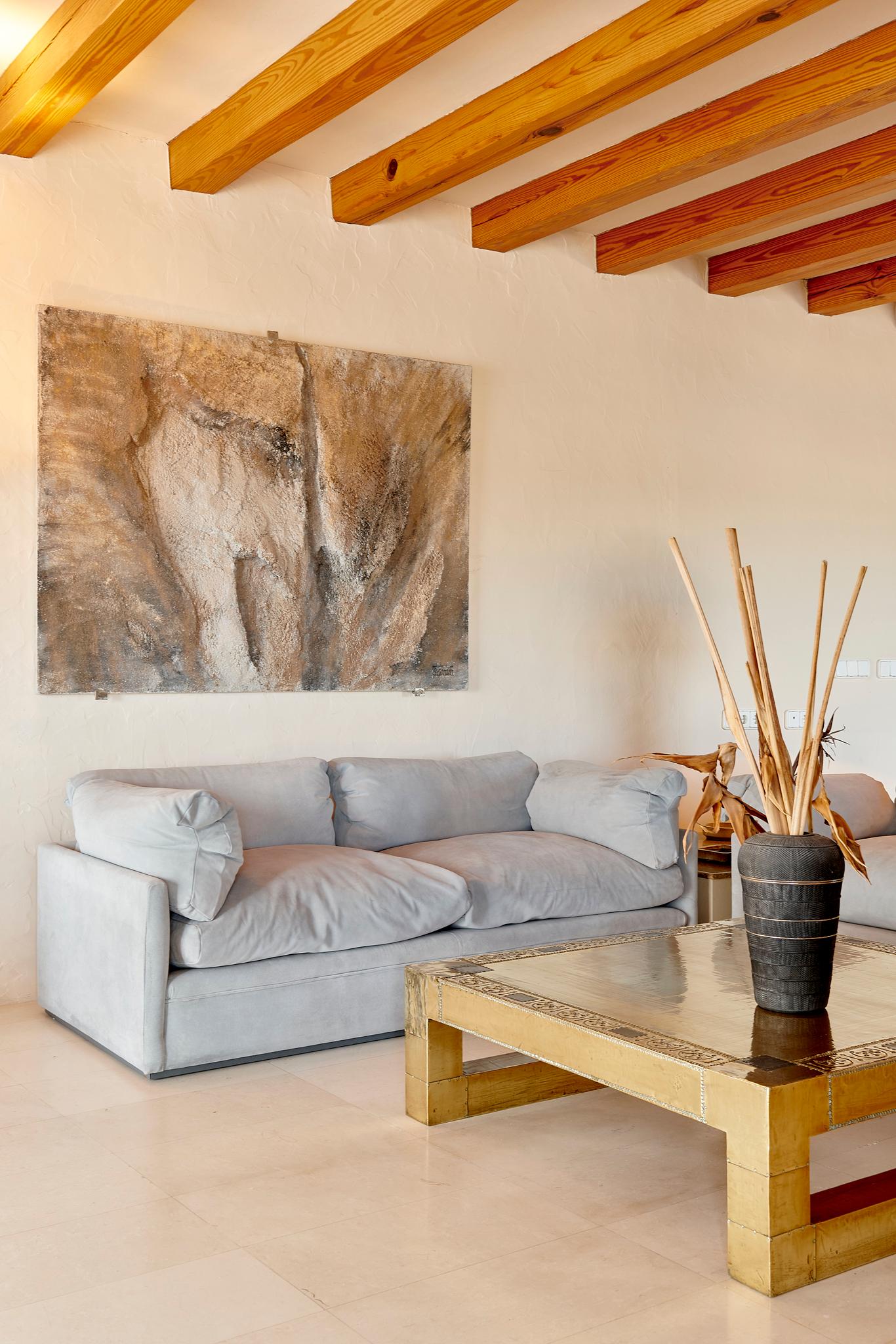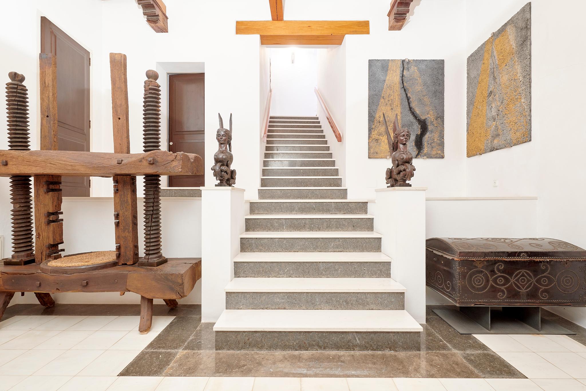 Step off the cobbled street and into a grand hallway where arches chiselled by the same Genovese craftsmen who left their mark on Ibiza’s Town Hall have been sympathetically preserved. Staircases forged into concrete and ancient wood that runs along the ceiling. Two reception rooms, where smooth concrete and timber accents amplify the flow of space, are bright and airy thanks to their seamless connection with the outdoors. Note the traditional forms that are scattered throughout the cleverly interconnected rooms; an old wine press, an Indian-inspired armoire and a Castilian door.