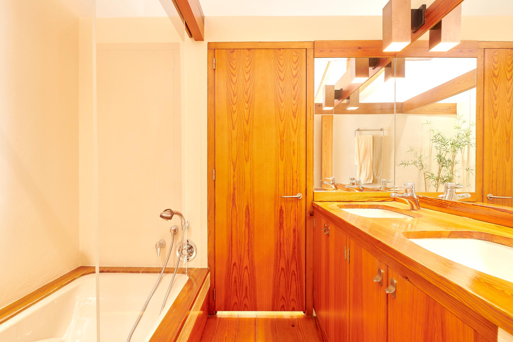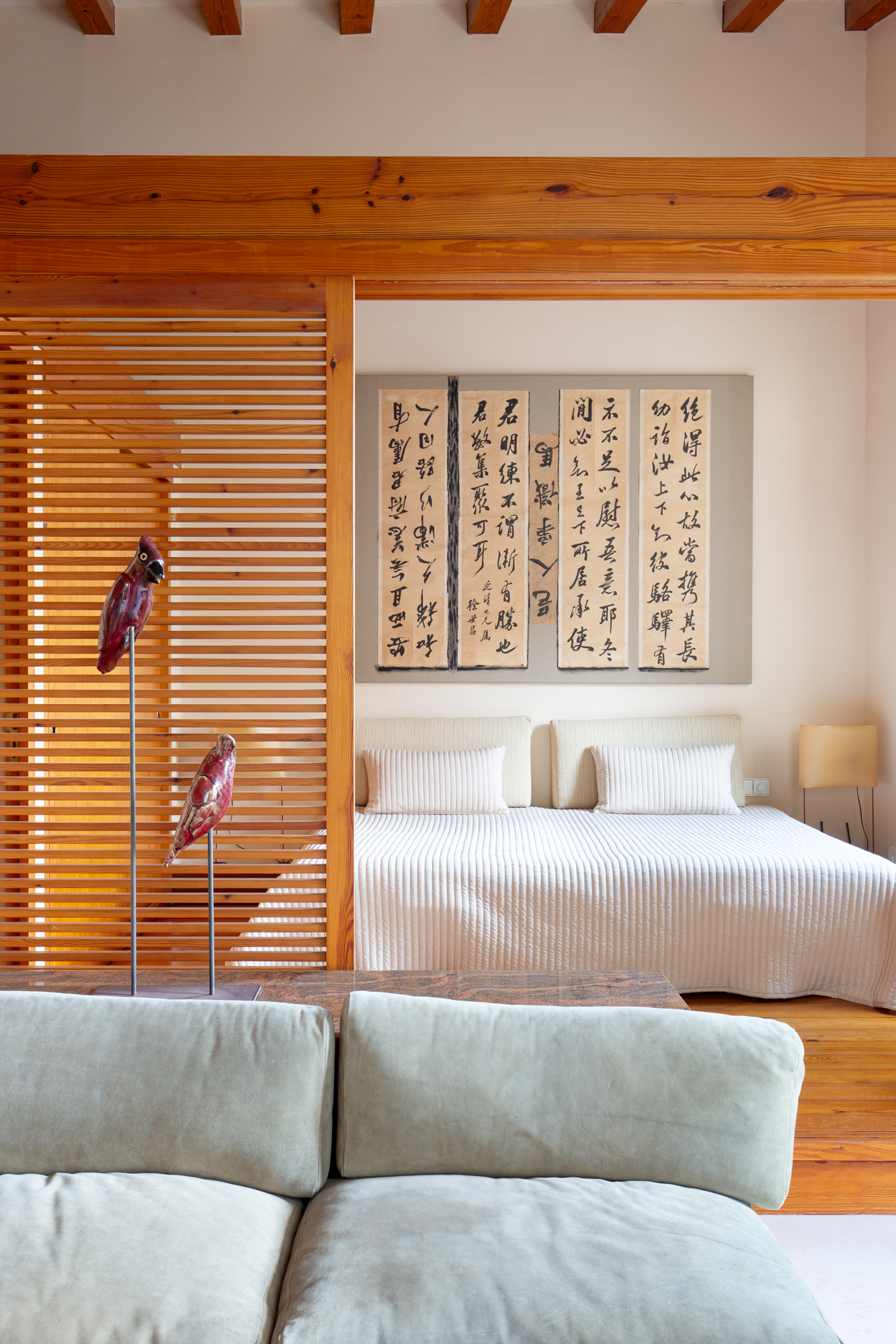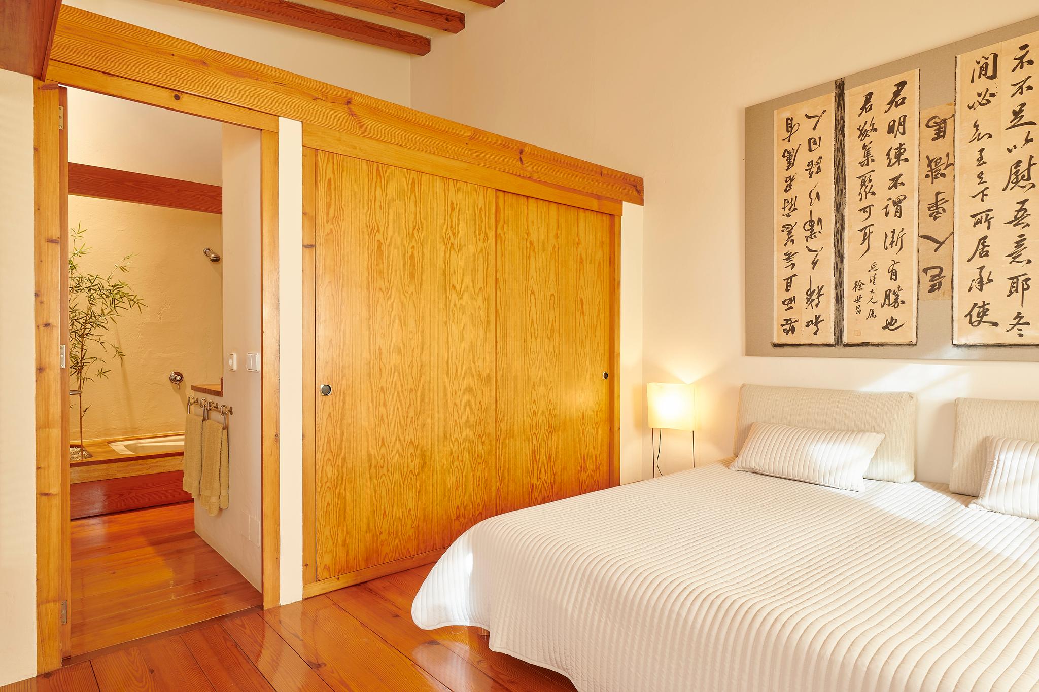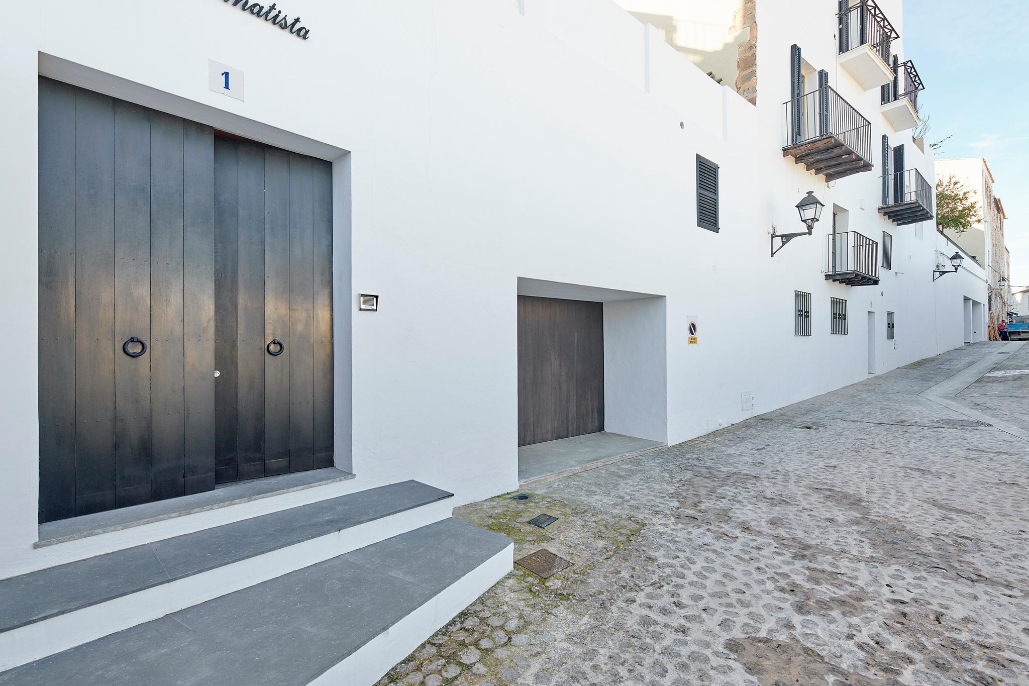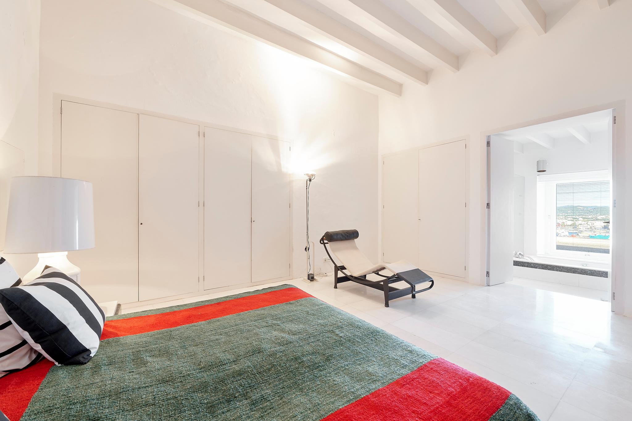 Upstairs, a self-contained master suite, where oriental design meets Ibicencan textures. It’s subtly zoned with a dedicated dressing area, seating space and a bed that can be closed off thanks to sliding shutter-style internal doors. It’s served by its own kitchen and bathroom. There’s access to a split-level private terrace that drinks in views of the imposing cathedral and lively harbour. Elsewhere, a garage with parking space for two cars and utility.