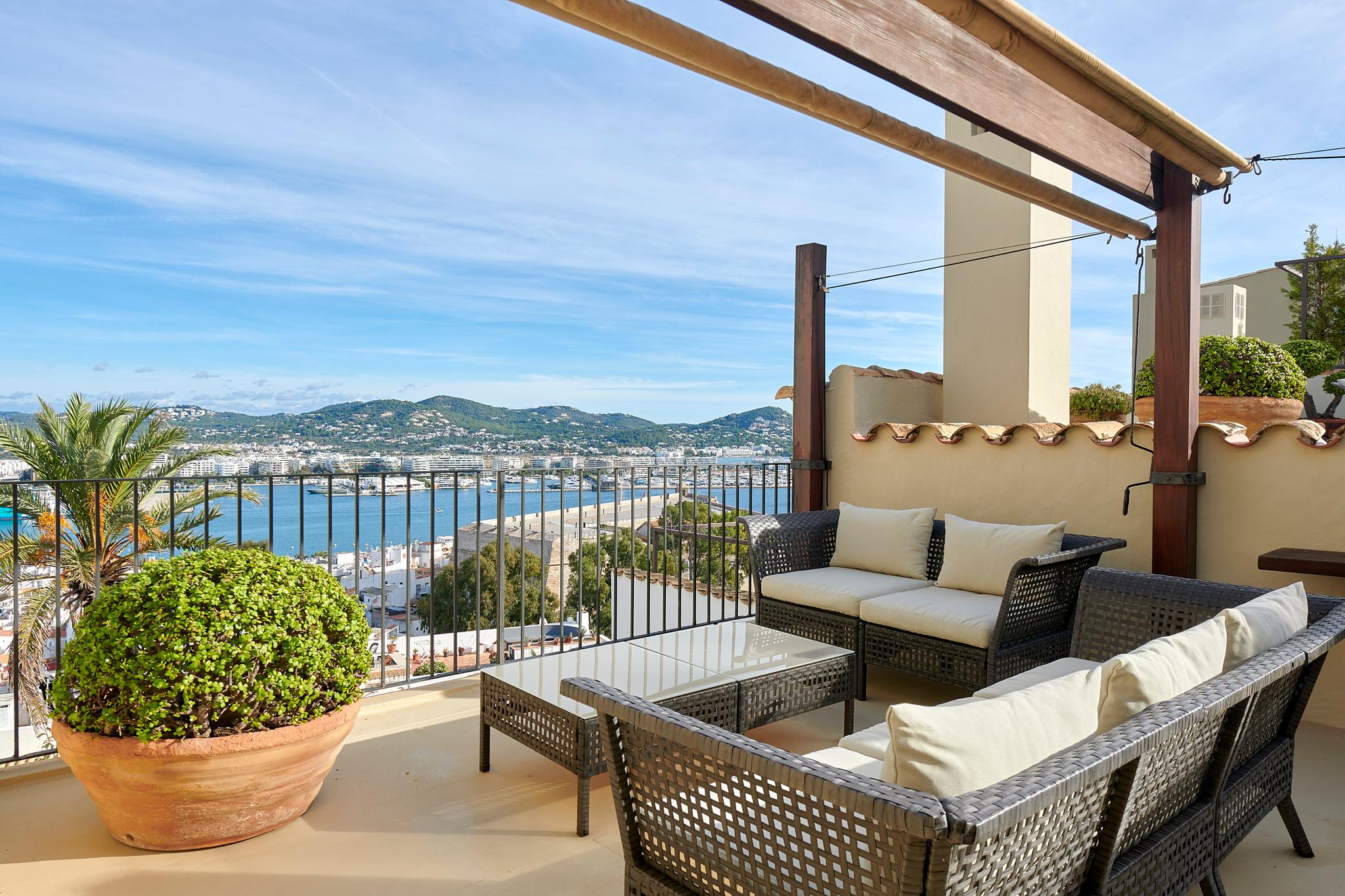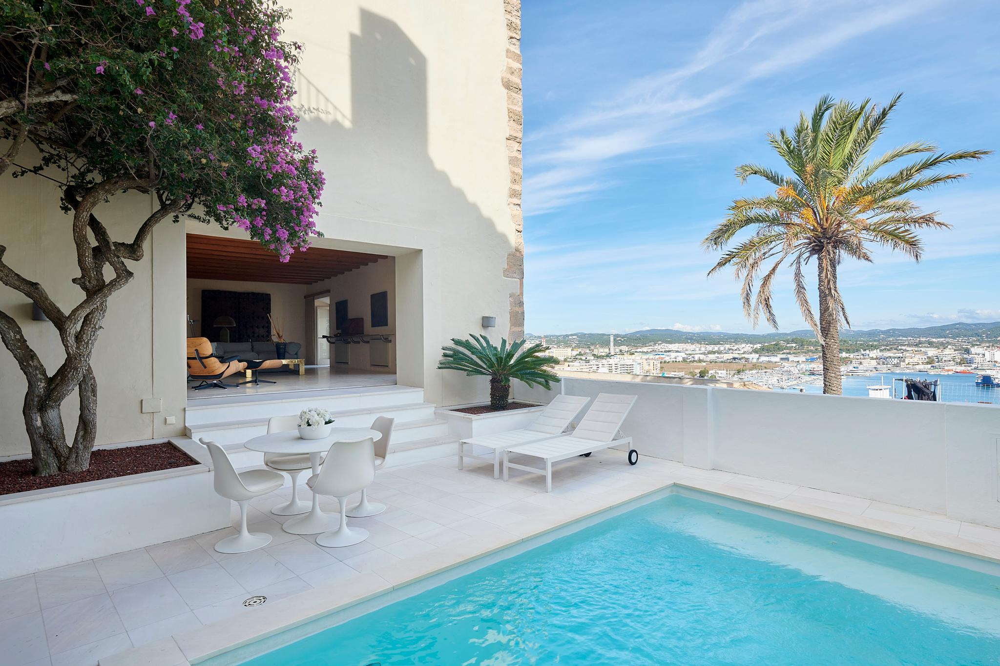 There’s a spectacular sense of history to this two-bedroom villa perched on one of the highest points in Dalt Vila. With origins dating back to the 17th century, it’s a landmark in Spanish-Italian architecture.